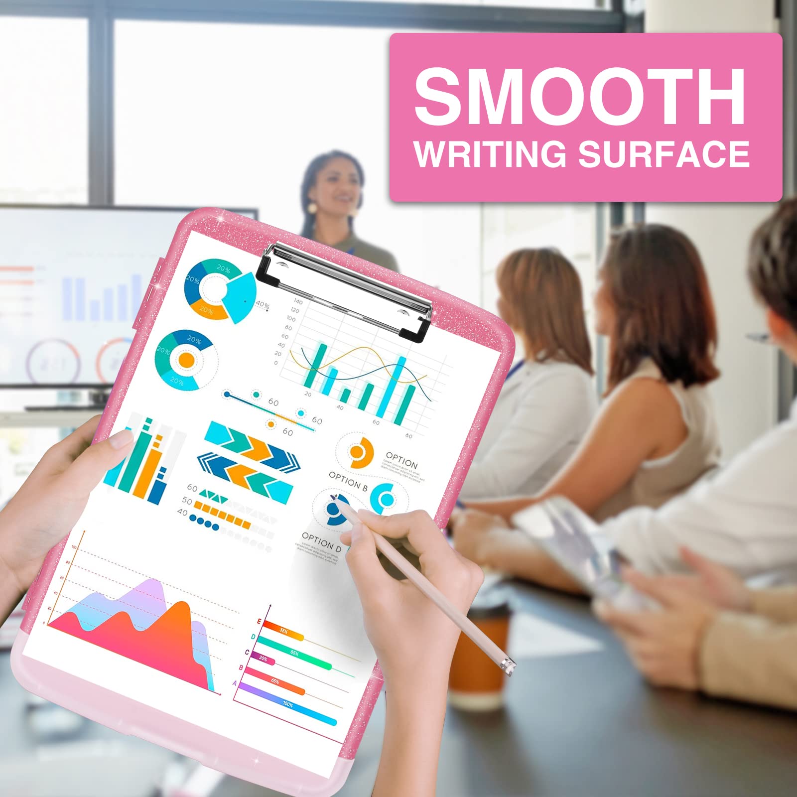 Cute Glitter Design & Transport Safely : Say goodbye to monotonous traditional clipboard, our glitter style make your work, study and life more attractive while giving you the reliable functionality. Compared to other packaging using opp bags, we use the strong carton packaging to ensure that the parcel arrives safely.