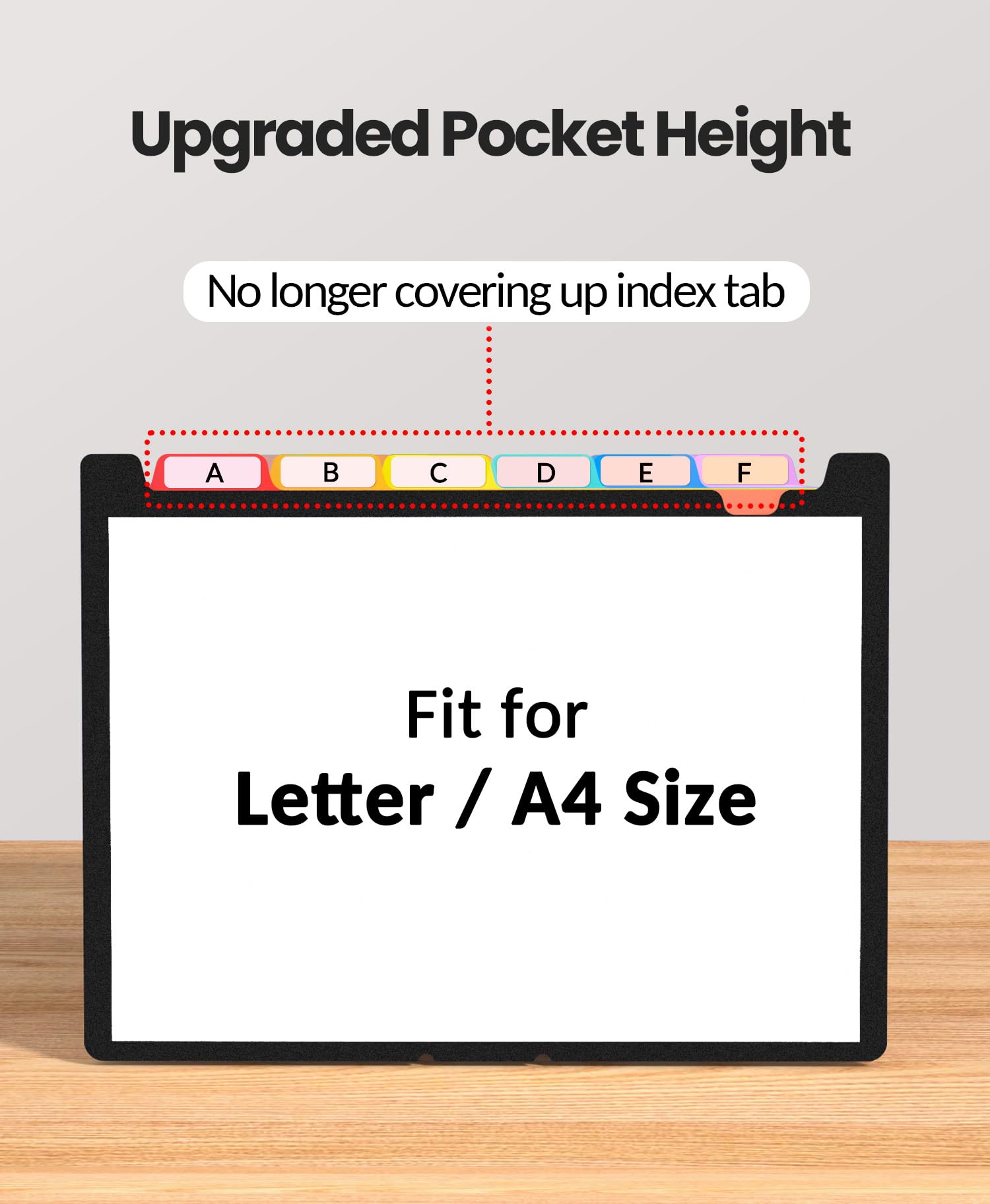 Deeper Pockets & Unobstructed Tabs: In response to a common issue in accordion folders where papers cover index labels, we've increased pocket height by 0.8 inches (2 cm). This unique enhancement ensures your labels remain visible—a feature unmatched by competitors