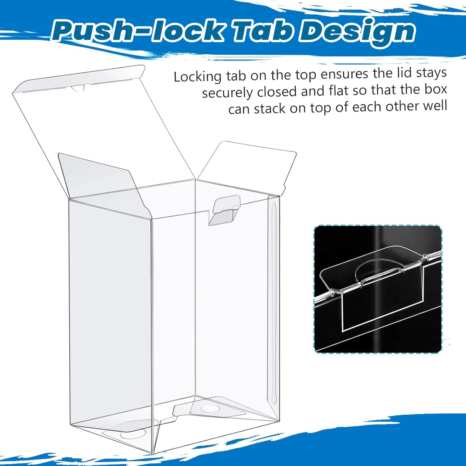 Easy to use: Features an auto-locking bottom design for quick setup. Simply press the sides together to form the box and snap the bottom tabs securely into place. Your display case is ready in seconds.