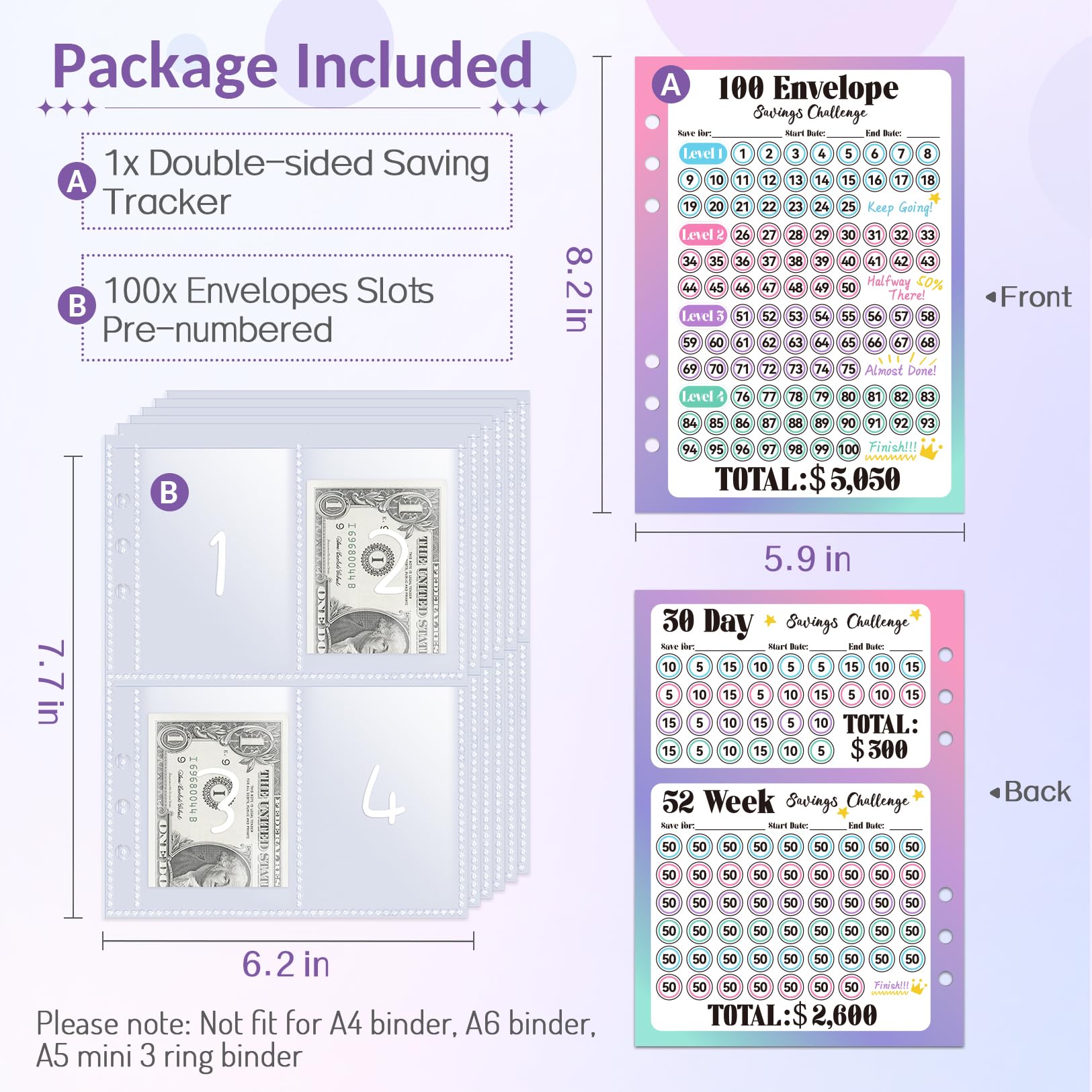 A5 6-Ring Binder Compatible: If you already have a 6-ring A5 binder, effortlessly create your own 100-envelope savings challenge and skip the whole set. Whether your existing kit falls short of your savings goals, this option seamlessly supplements or replaces your savings challenge.