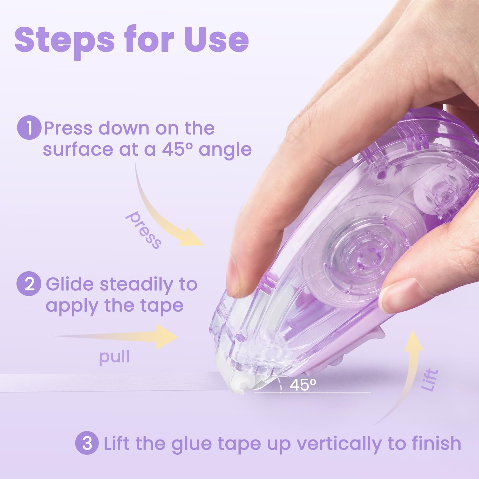Simply press down at a 45 degree angle, glide steadily to apply the tape, then lift vertically to finish. No more mess or wrinkling. Perfect alternative to liquid tape or traditional double-sided tape.