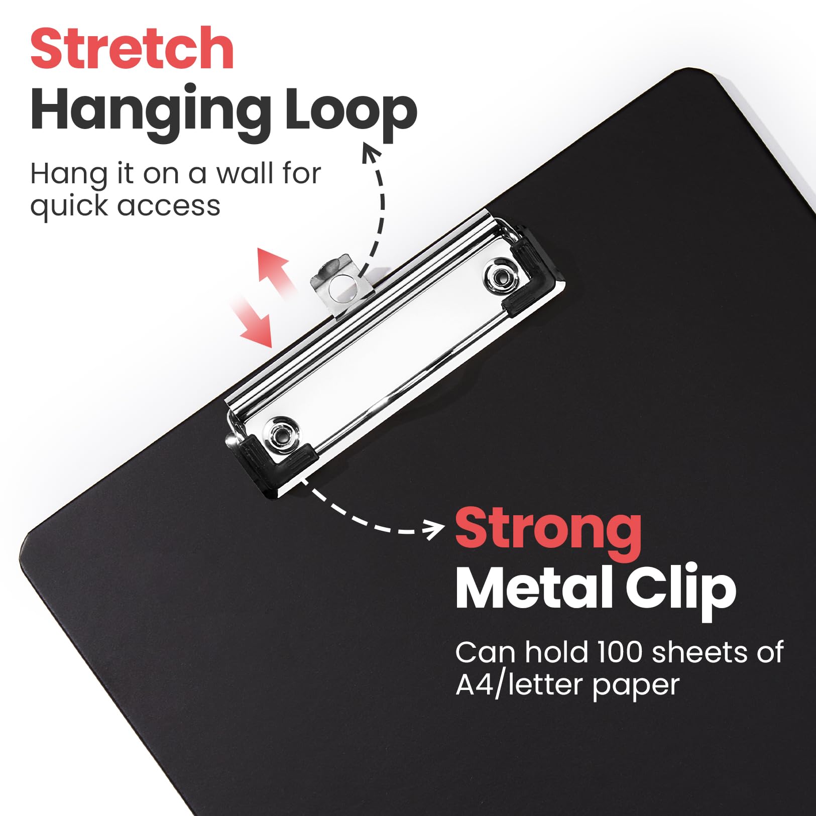 Strong Metal Clip & Retractable Hook: Secure your documents and hang with ease. The low-profile metal clip holds up to 100 sheets firmly, with non-slip rubber to prevent sliding. The built-in retractable hook tucks away or extends to hang anywhere—ideal for nurses, teachers, or anyone needing hands-free access and organization