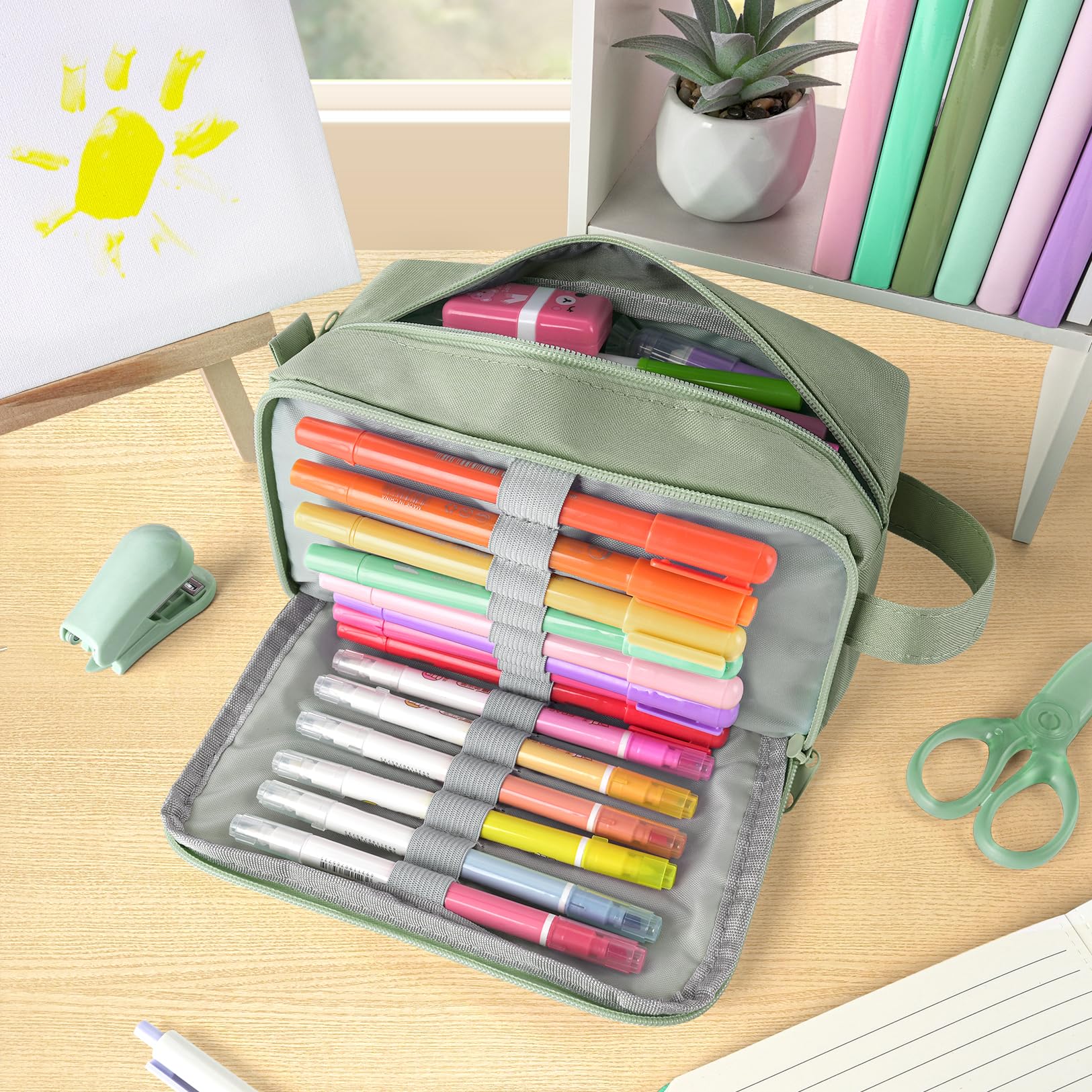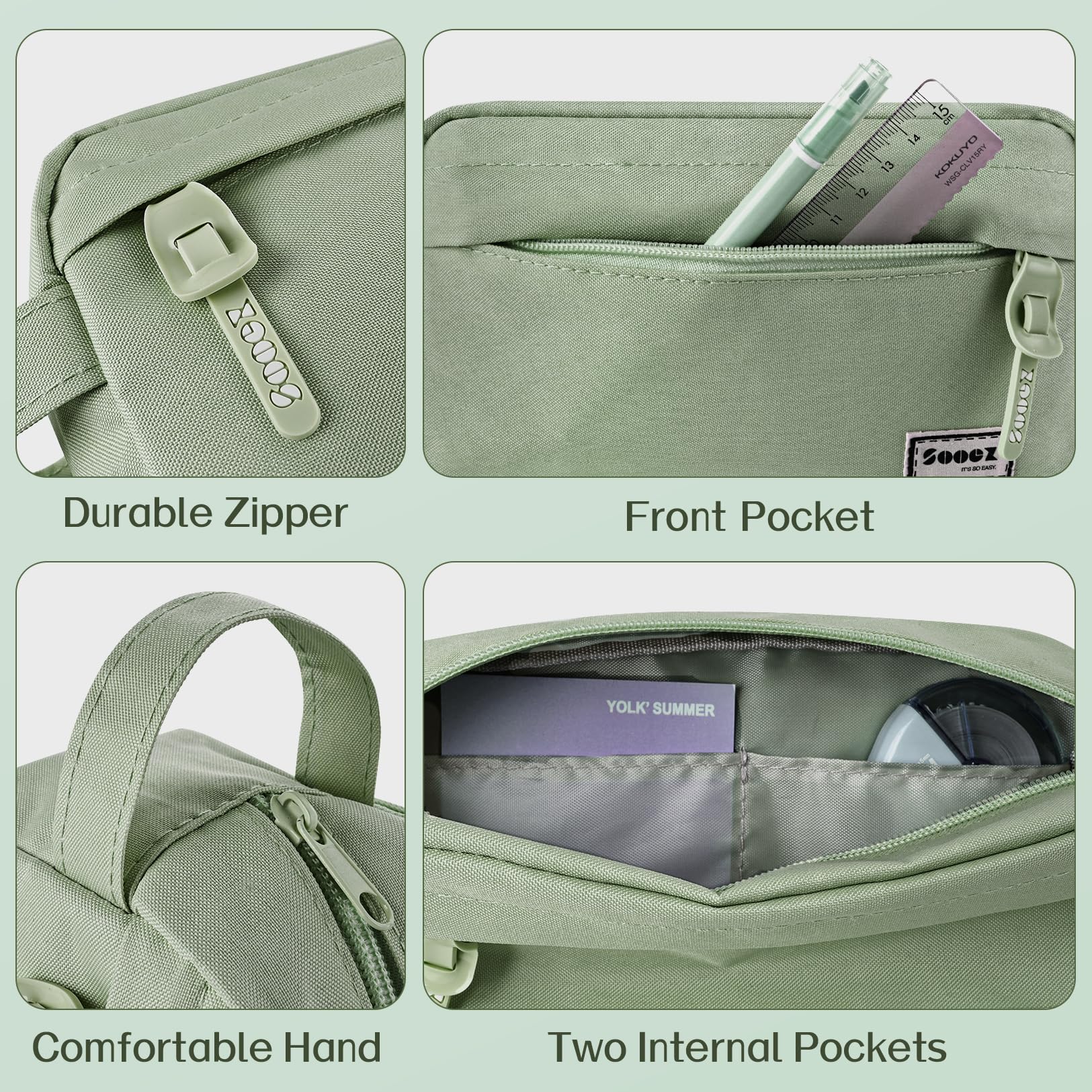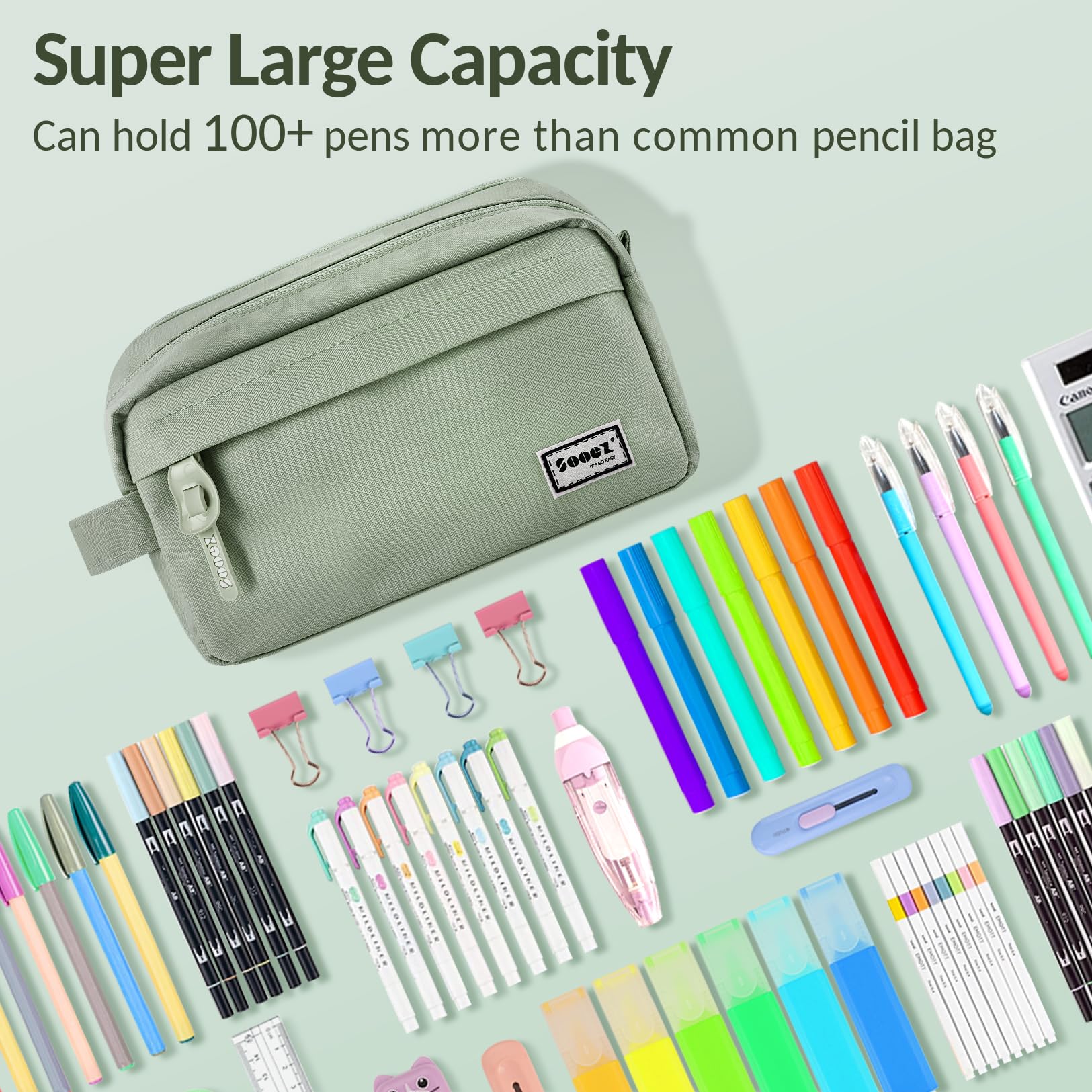Super Large Storage: This pencil case is probably the biggest one you've ever come across. Huge storage space that can hold up to 100 pens or pencils. Perfect for students who carry a variety of tools besides pens, such as pens,such as markers, rubber, calculator and more