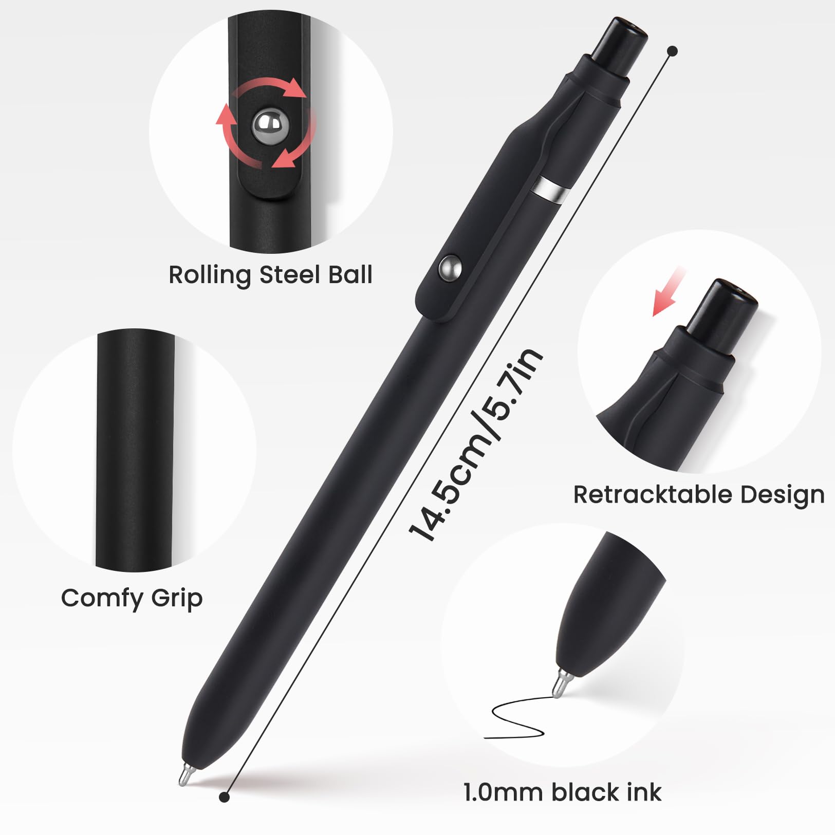 【Buttery-Smooth Writing Experience】:Experience skip-free writing with our 1.0mm ballpoint pens. Tungsten carbide ball and premium ink, these black ink pens deliver consistent, vivid lines—ideal for journaling pens and note-taking,witch ensure a fluid writing speed with pure.