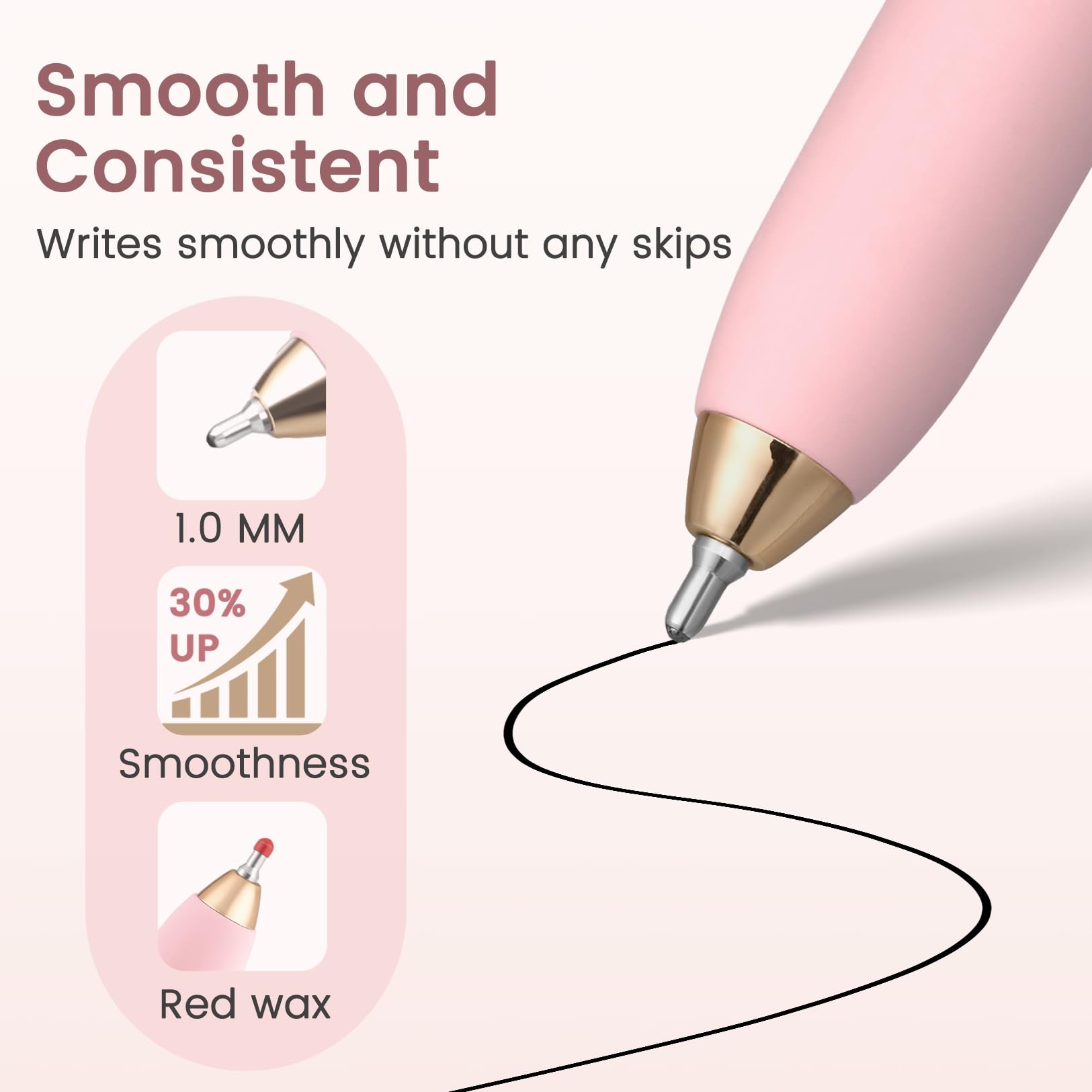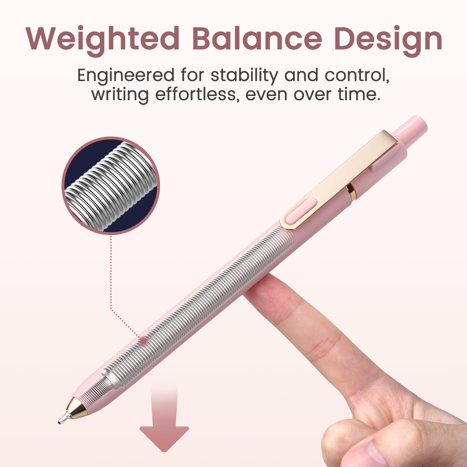 Comfortable Grip & Balanced Feel: Designed with a soft-touch finish and internal metal barrel for perfect weight balance. Comfortable to hold for hours when using these ink pens, reducing hand fatigue without the need for rubber grips.