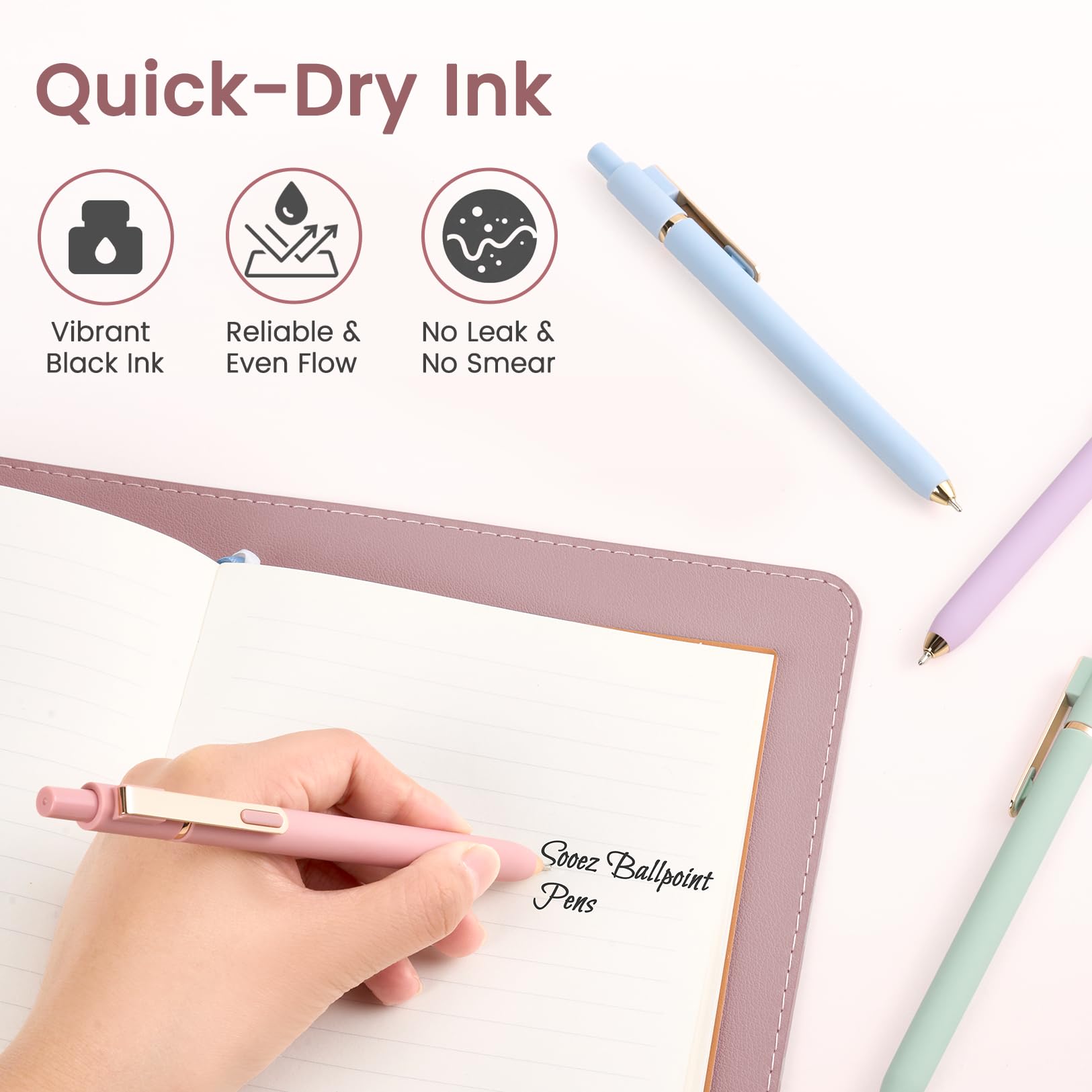 Quick-Drying Black Ink: No more smudges or messy hands by ballpoint pens. The fast-drying ink locks in place instantly, resisting smears and bleed-through—perfect for fast writers and left-handed users.