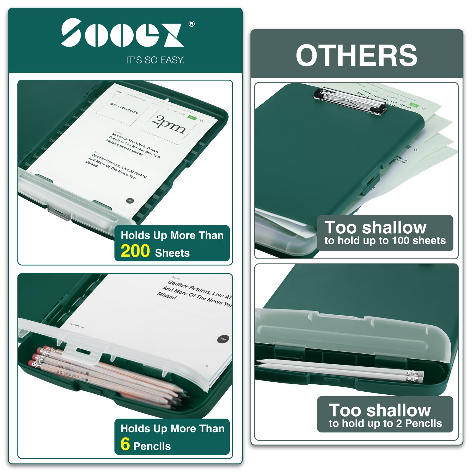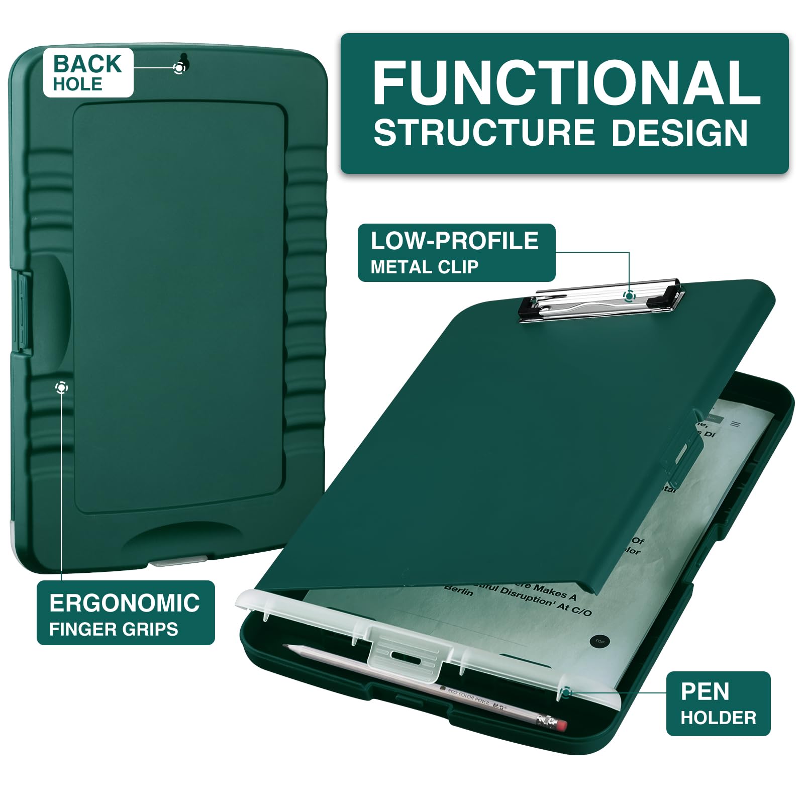 High Capacity: Equipped with both a paper storage component that holds twice as much paper as other clipboards and a built-in pencil case. The high-capacity medical clipboard can securely hold up more than 200 letter-sized documents, and up to 6 pencils.