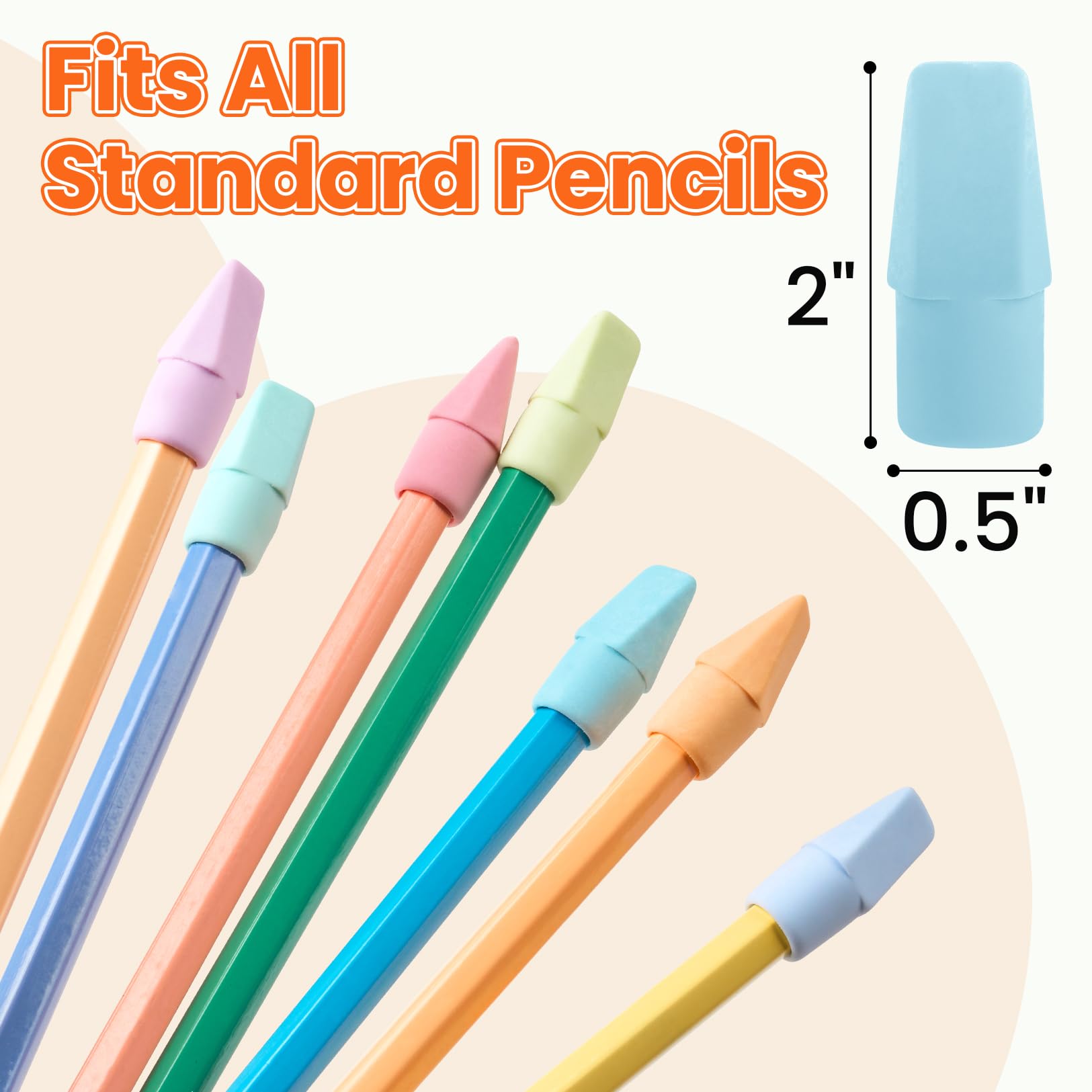 Fits all Standard Pencils: Size in 1"L x 0.4"W, 7.8 Diameter; Our colored eraser fits all standard size pencils