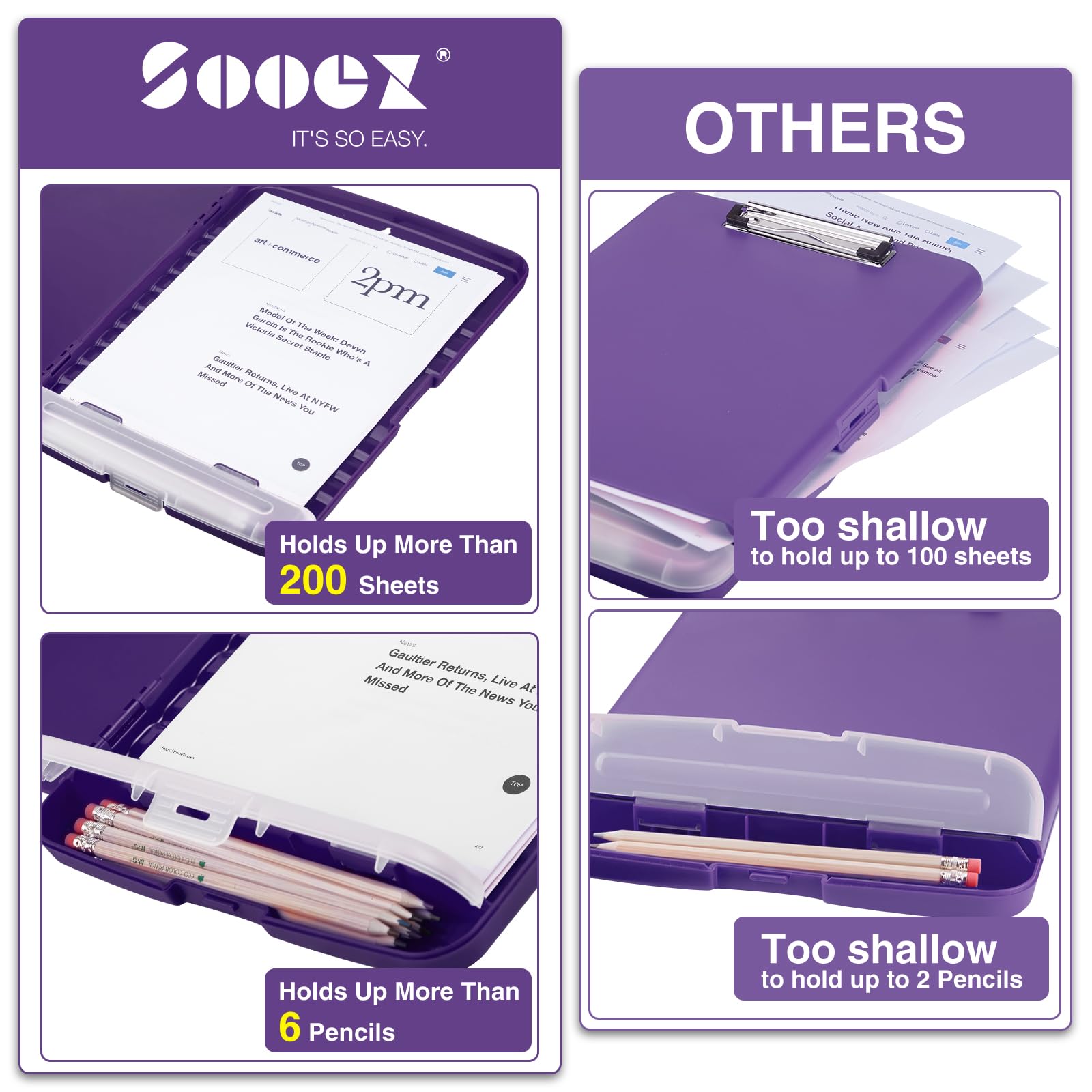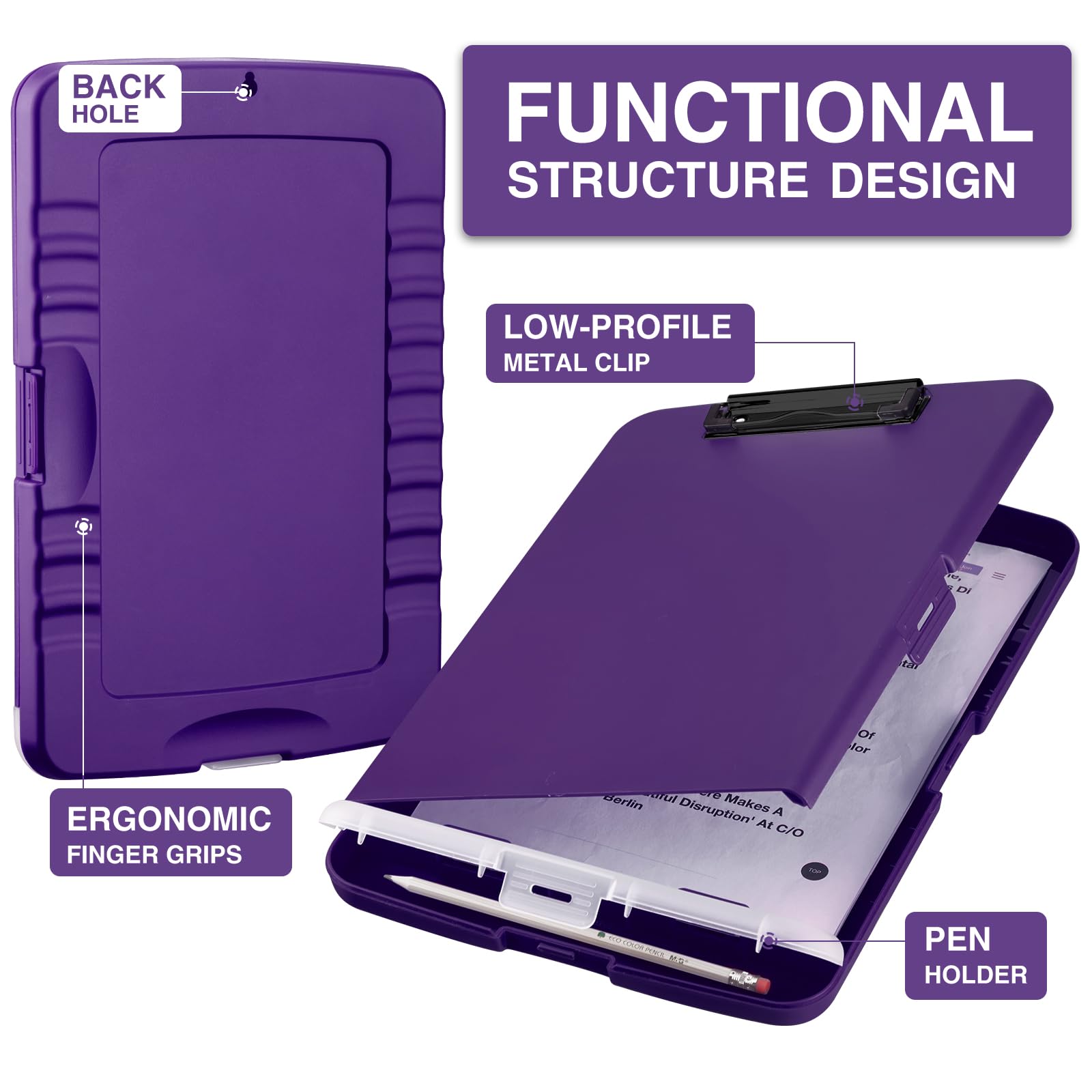 High Capacity: Equipped with both a paper storage component that holds twice as much paper as other clipboards and a built-in pencil case. The high-capacity medical clipboard can securely hold up more than 200 letter-sized documents and legal pads, and up to 6 pencils.