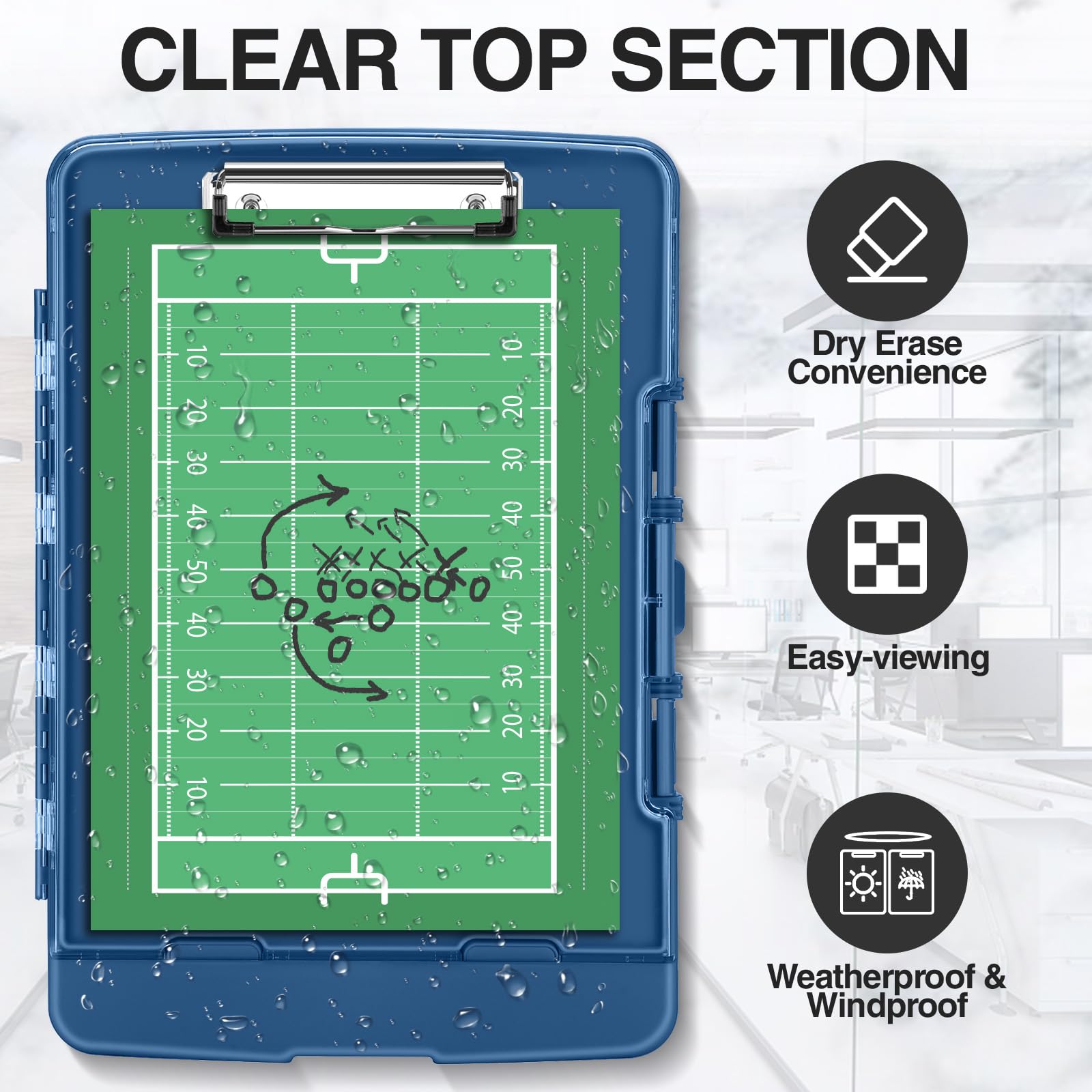 Writable & Visible Clear Top Panel: The transparent top section is compatible with dry erase markers (not included) and perfect for writing or reusing the same paper. Keeps your rosters and playlists dry and safe even on bad rainy days and gives you easy access to frequently used documents.