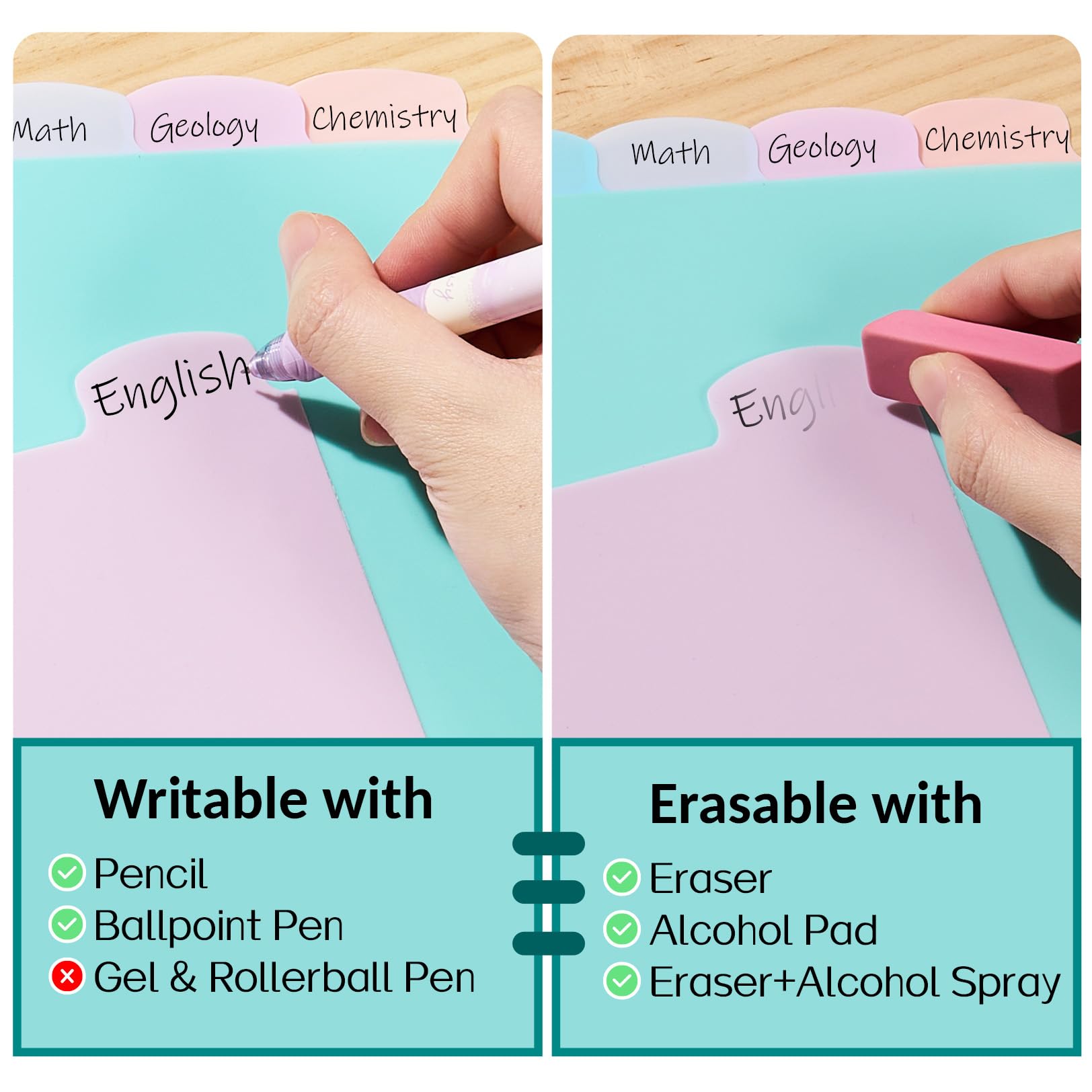 Easily WRITE & ERASE: Long-Lasting plastic allows us to write and erase directly using a ballpoint pen or pencil. It is easy to quickly erase and rewrite on dividers, making it not only reusable but also economical and environmentally friendly. If writing has been left for a long time and cannot be completely erased with an eraser, it can be easily removed with alcohol.