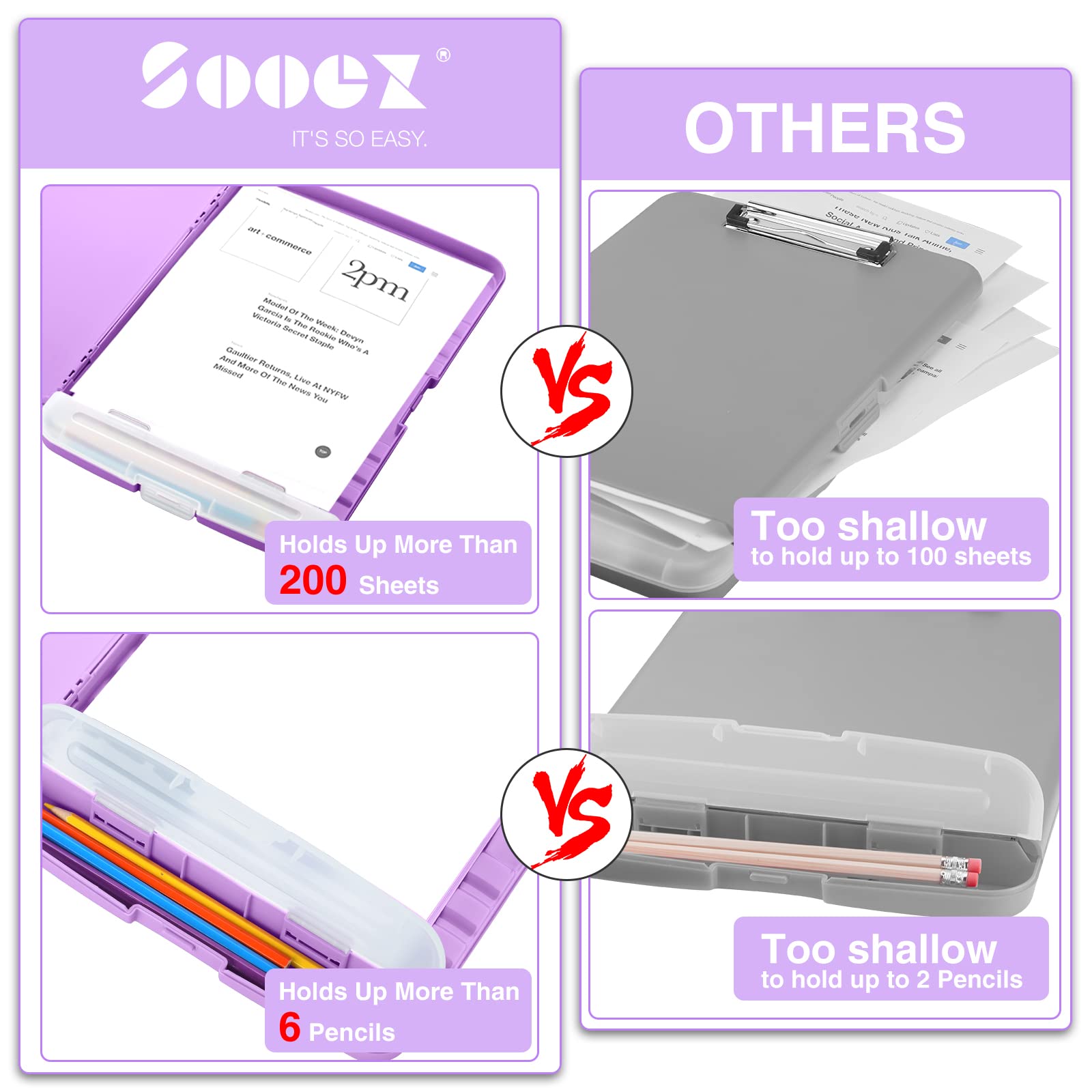 High Capacity: Equipped with both a paper storage component that holds twice as much paper as other clipboards and a built-in pencil case. The high-capacity medical clipboard can securely hold up more than 200 letter-sized documents, and up to 6 pencils.