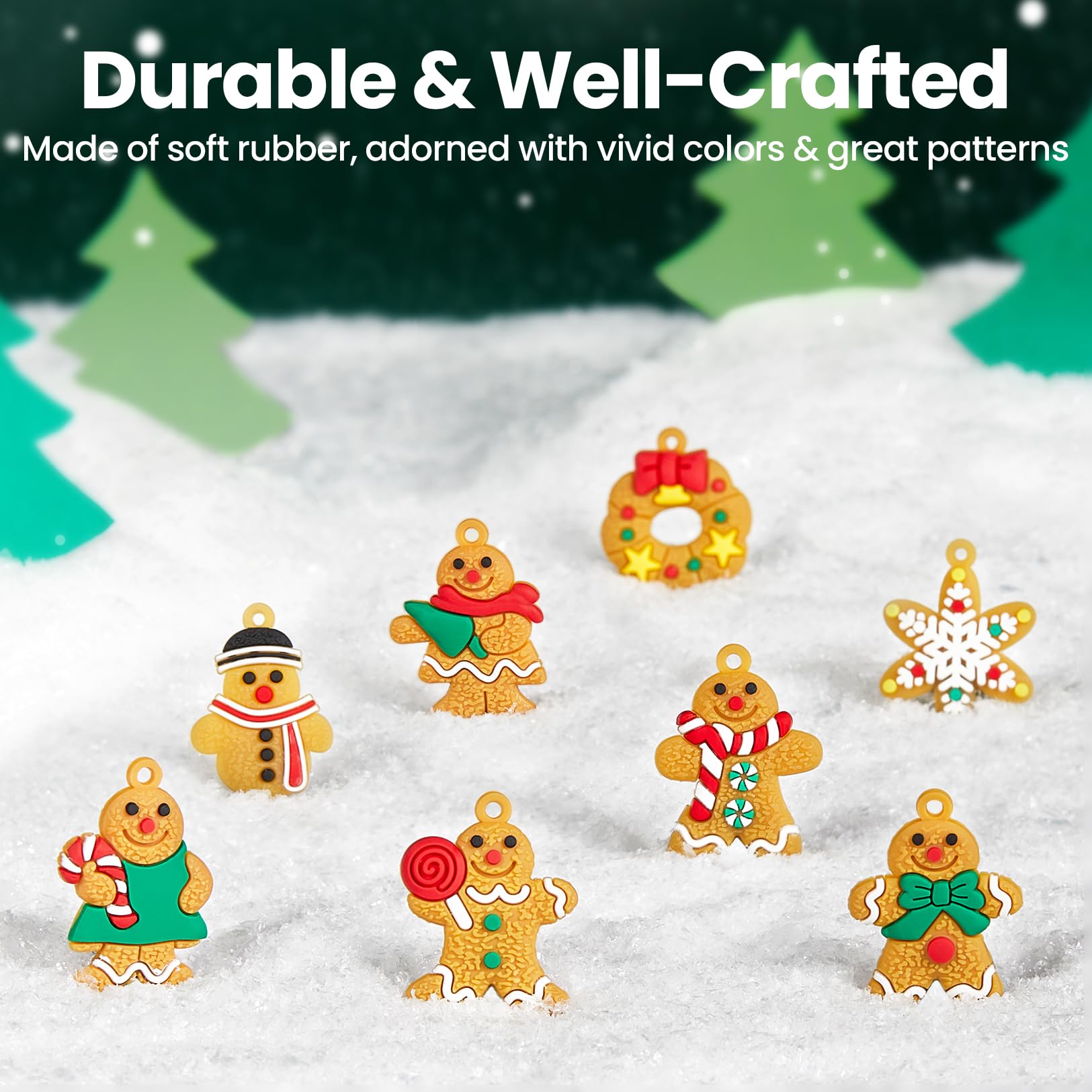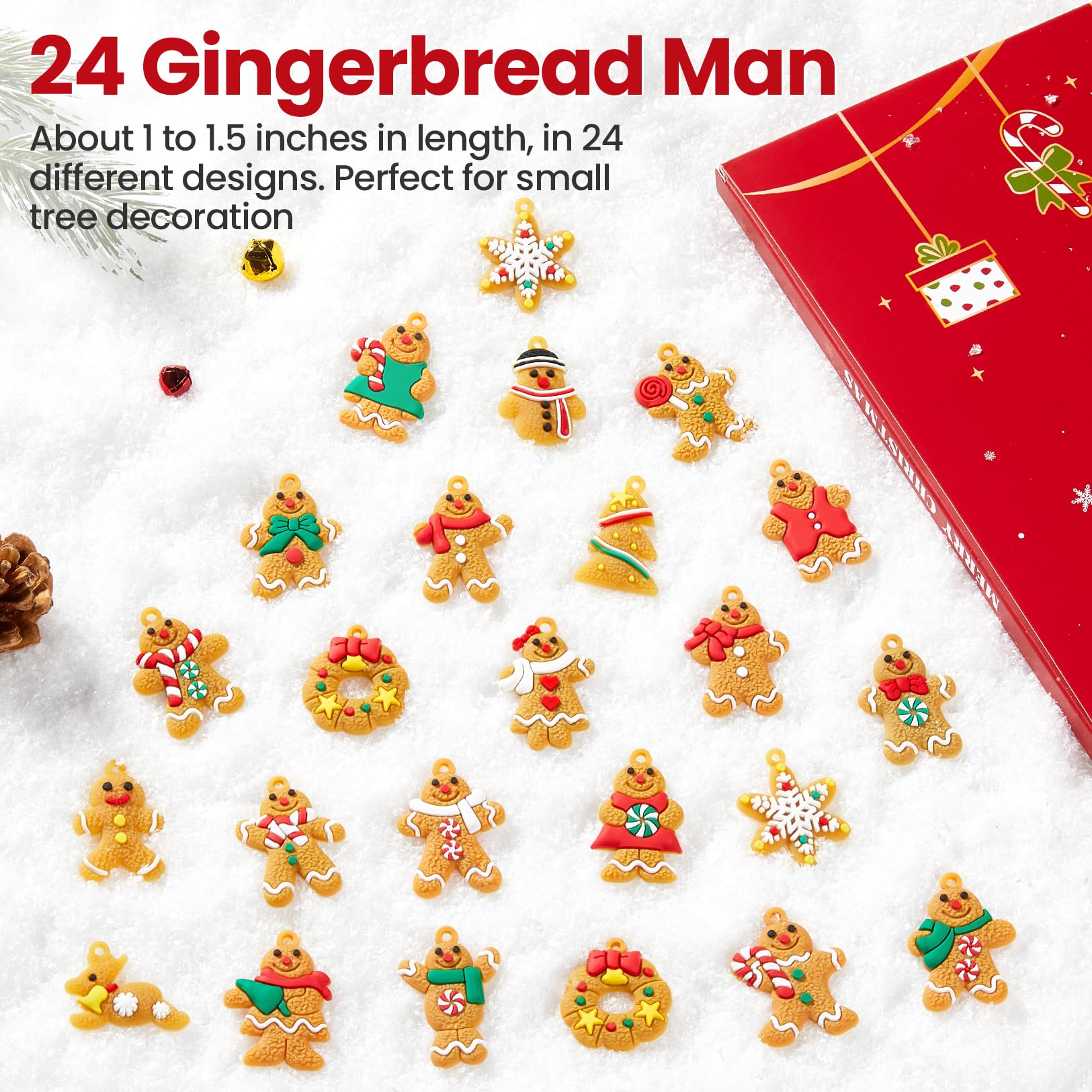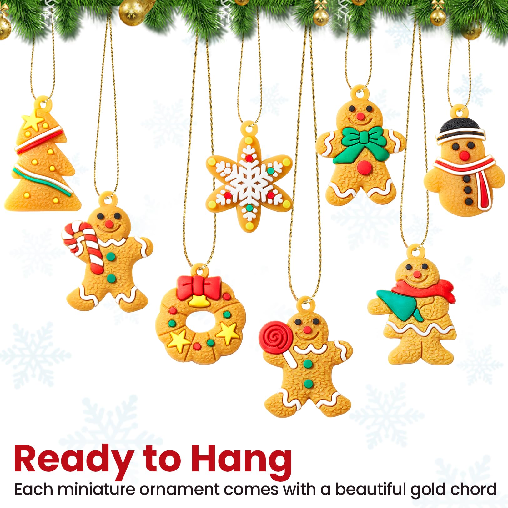 24 Adorable Lookings in 1 Set: Includes 18 gingerbread figurines, 2 wreaths, 2 stars, 1 Christmas tree, 1 Reindeer. Rich variety to spark holiday joy and decorate every corner of your tree without repetition