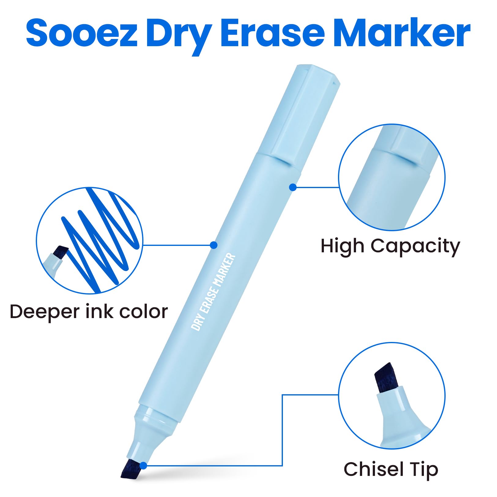 Smooth Writing & Comfortable Grip: Sooez Dry Erase Marker can smooth and skip-free writing every time. The markers are designed for comfortable grip and control, reducing hand fatigue during long sessions of teaching or brainstorming