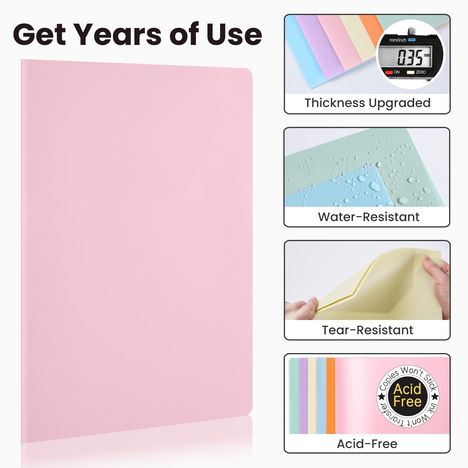 Stable & sturdy Folders: Our folder is 0.35 mm thick. The thickness of our plastic folders exceeds that of our rivals', even twice thick. Made of durable and cleanable poly material, water-resistant, tear-resistant and acid-free folders can last for many years