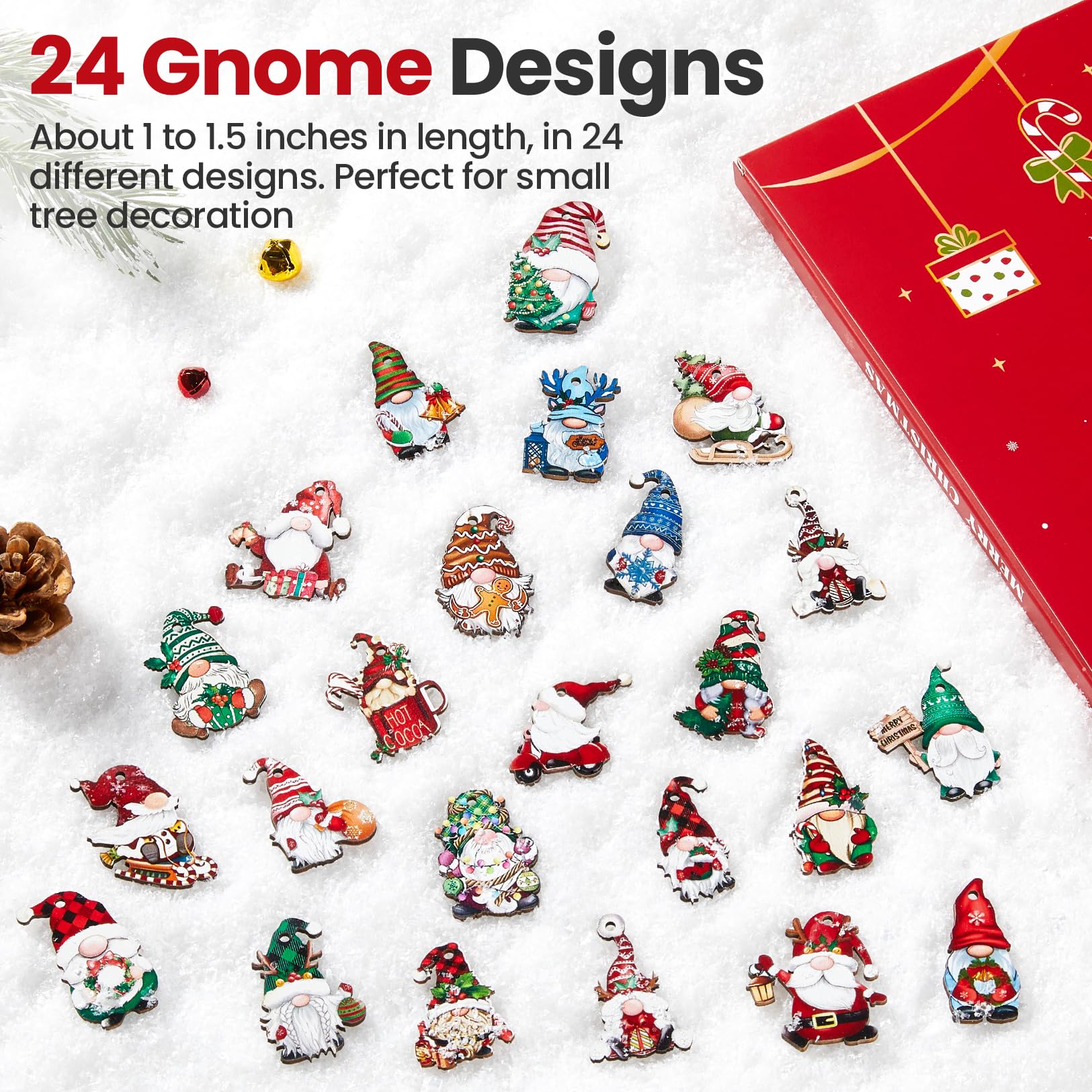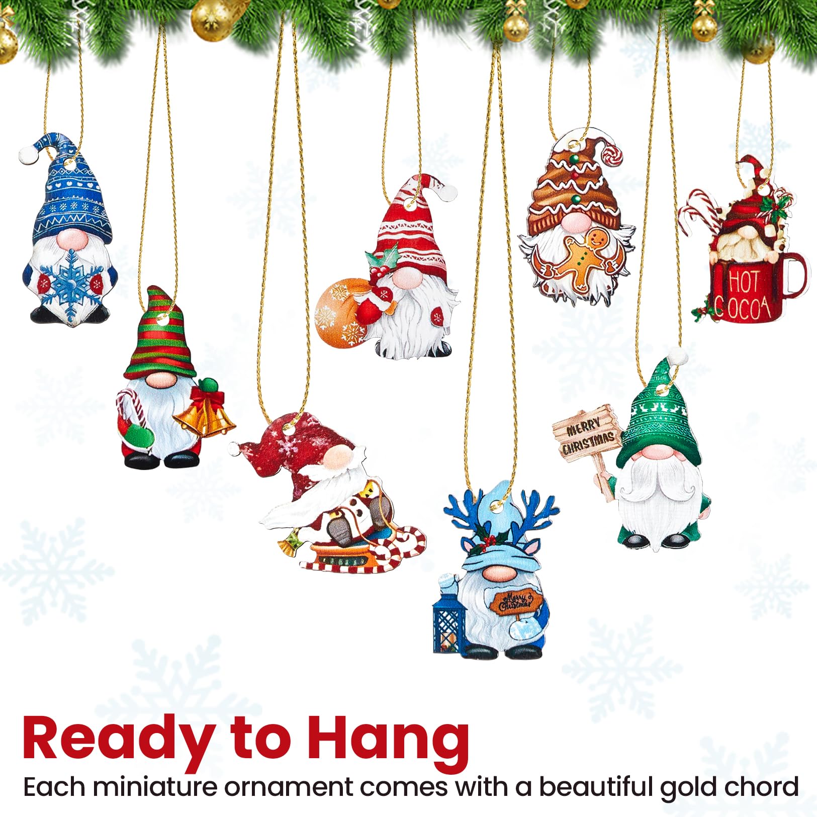 24 Adorable Lookings in 1 Set: Includes You will get 24 pieces and 24 different styles of gnome Christmas ornaments. Rich variety to spark holiday joy and decorate every corner of your tree without repetition