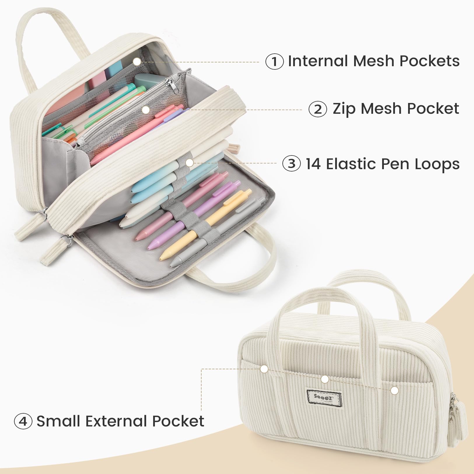 Soft Comfort Corduroy Fabric: Constructed from premium super soft corduroy fabric. This cute pencil case offers exceptional durability and a soft, luxurious feel, comfortable to carry.