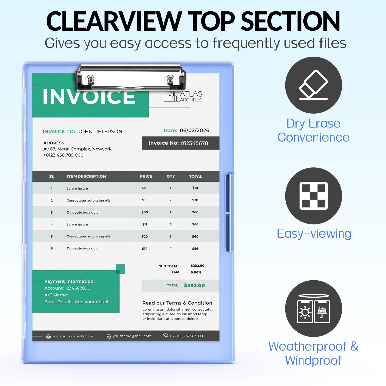 Dry Erase Top Compartment: The transparent top section is compatible with dry erase markers (not included) and perfect for writing or reusing the same paper. Keeps your rosters and playlists dry and safe even on bad rainy days and gives you easy access to frequently used documents