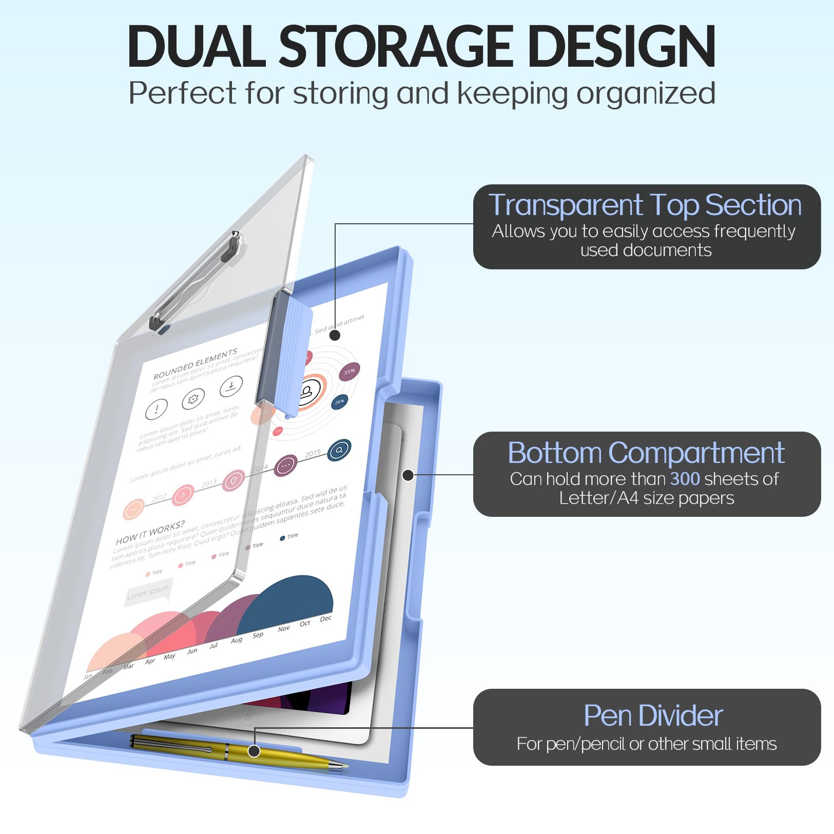 Dual Storage Compartment: Dual-Layer design ensure roomy space for various needs of storage. Keep frequently used documents on the top compartment and store more than 300 letter-sized /A4 sheets in the spacious bottom compartment