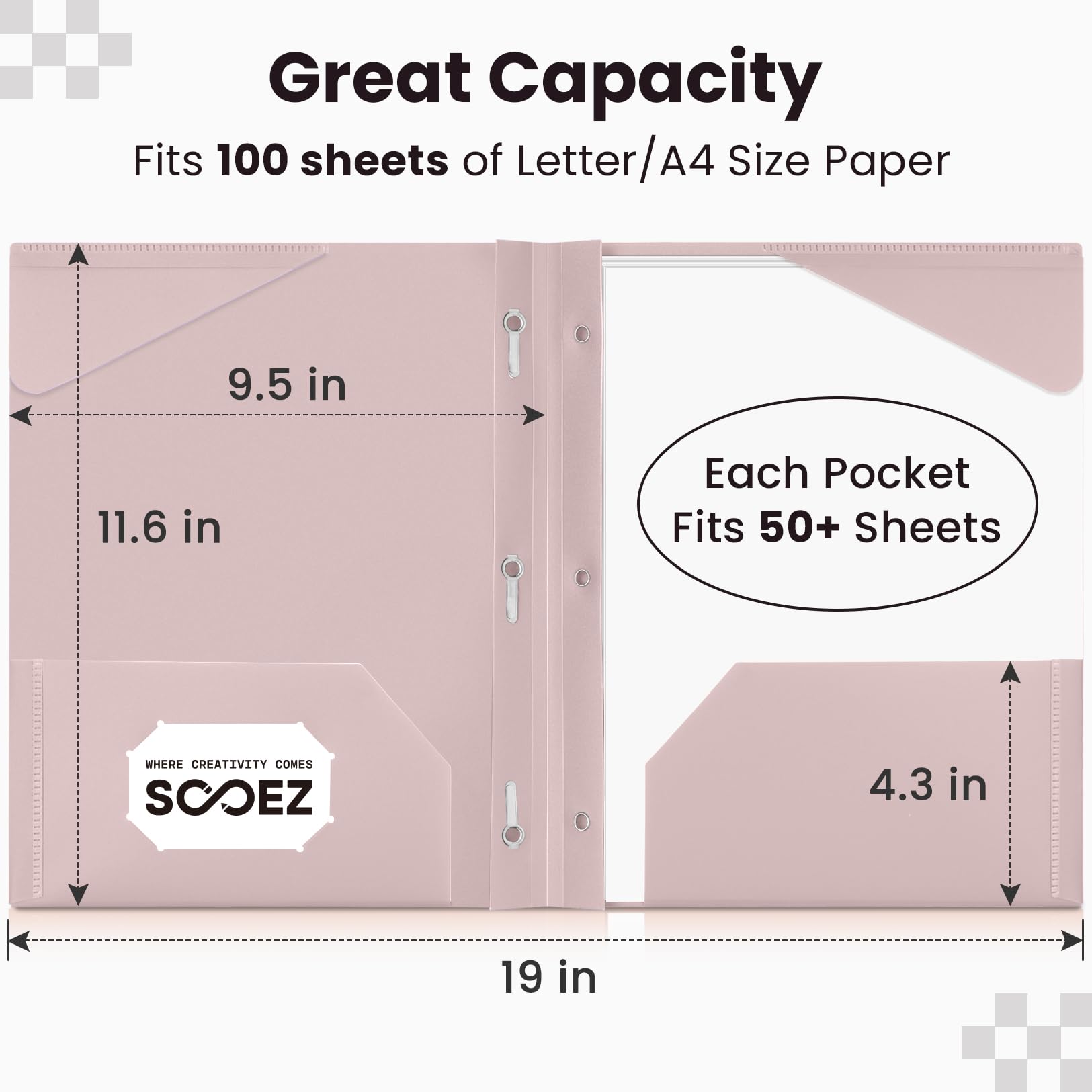Dimension & Capacity: 9.45"L x 11.65"W. Each folders come with two 5" high pockets that each can safely hold up more than 50 letter-sized documents, sales sheets, brochures and more