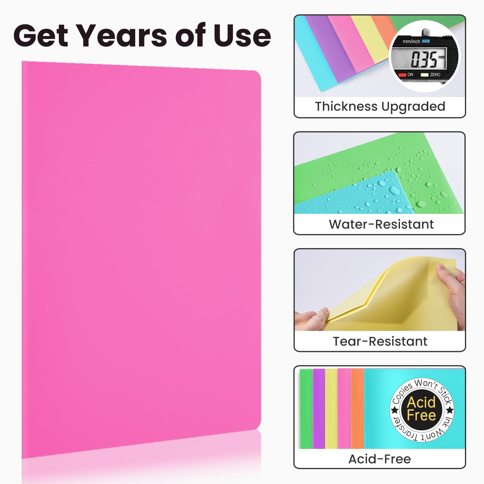Stable & sturdy Material: Our folder is 0.35 mm thick. The thickness of our plastic folders exceeds that of our rivals', even twice thick. Made of durable and cleanable poly material, water-resistant, tear-resistant and acid-free folders can last for many years.