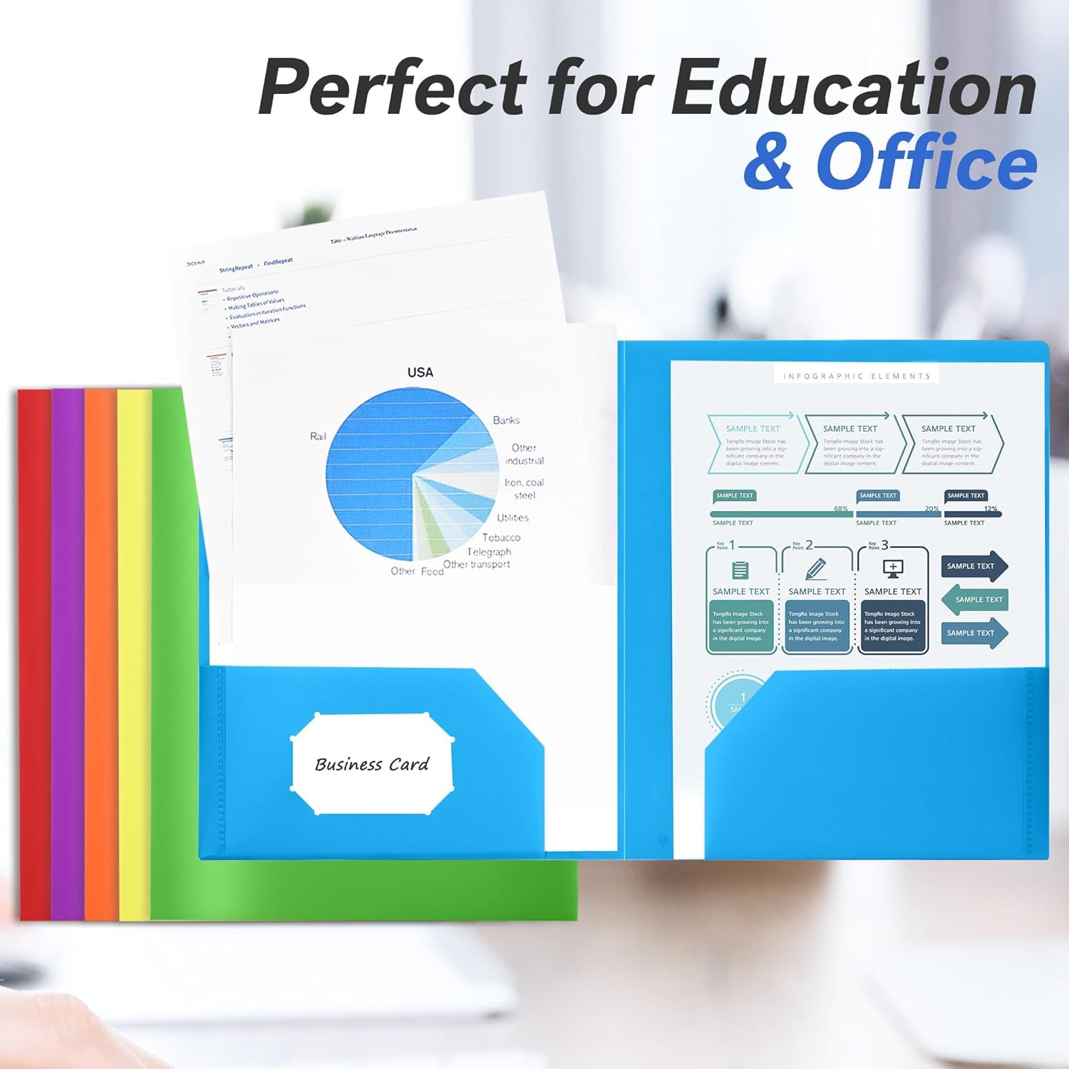 Back To School Supplies: The roomy 2 pocket portfolio folder is lightweight and easy to carry, a good choice for financial officer, teachers and students. Using the heavy duty plastic pocket folders to create school folders for the upcoming next semester, plastic pocket folders no prongs for a trade show, office folders to hold important project documents, and more