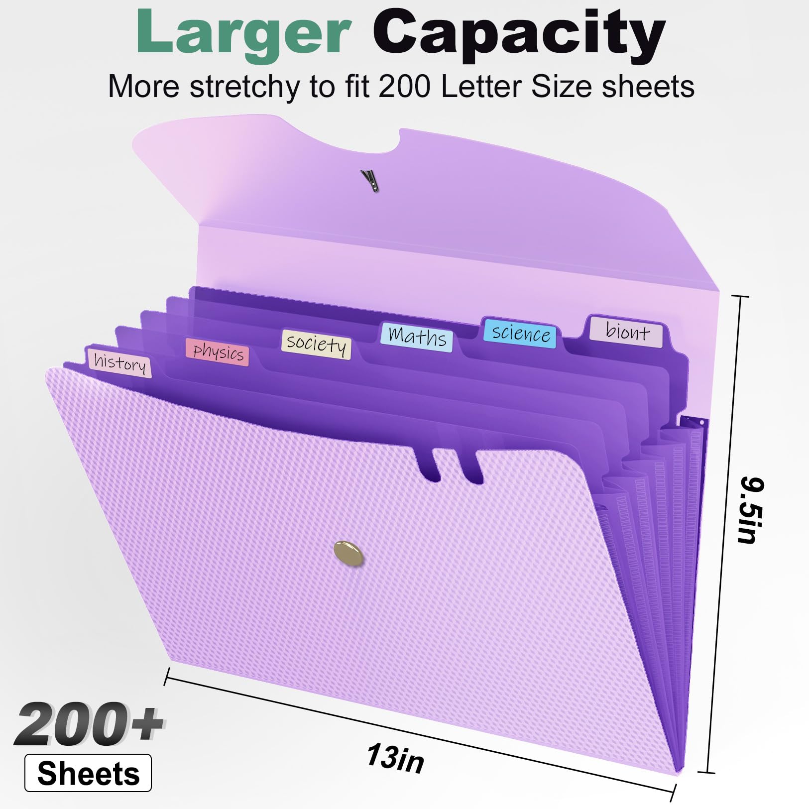 Expand Sufficiently & Larger Capacity: This accordion folder with expandable spine design is more stretchy to fit over 250 sheets without bulking up too much. You can throw loose-leaf papers, folders, or even small notebooks in here.