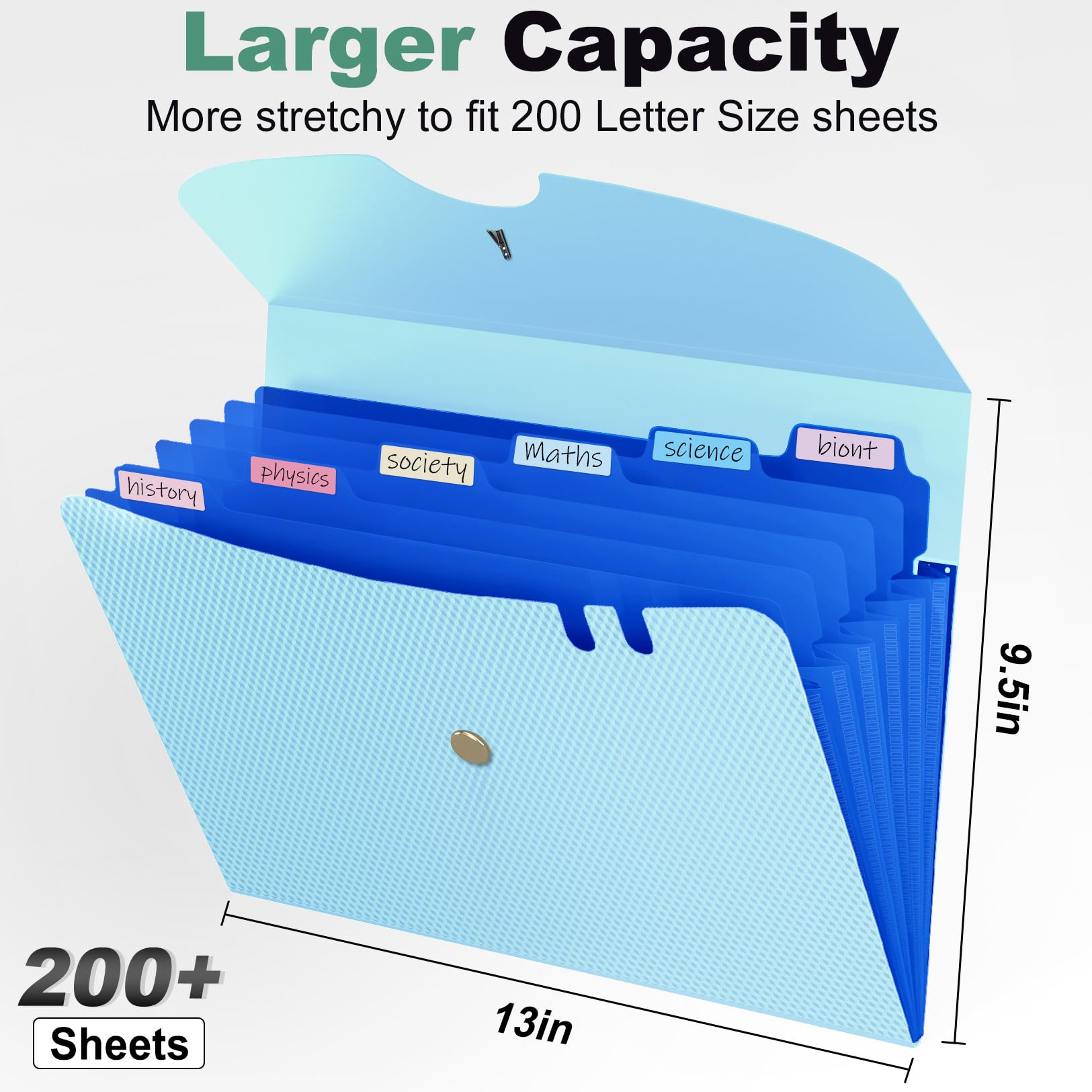Expand Sufficiently & Larger Capacity: This accordion folder with expandable spine design is more stretchy to fit over 250 sheets without bulking up too much. You can throw loose-leaf papers, folders, or even small notebooks in here.
