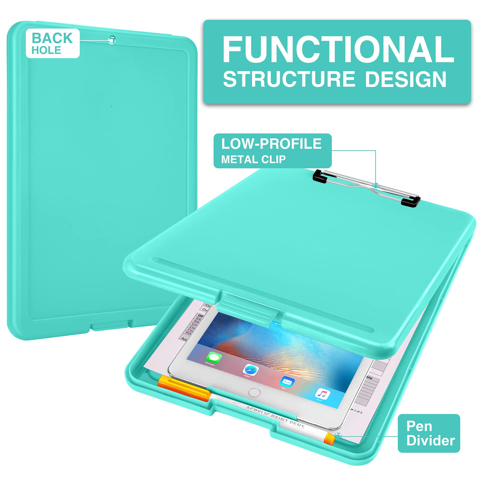 Keep All-in-one & Portable: A clipboard can be an organized mini desk wherever you go. Keep track of assignments completed and store the items (pens, pencils, paper, rulers) we may need all in one place with a storage clipboard. The office clipboard is slim enough to fit into your briefcase and backpack with ease but thick enough to carry a hefty stack of papers
