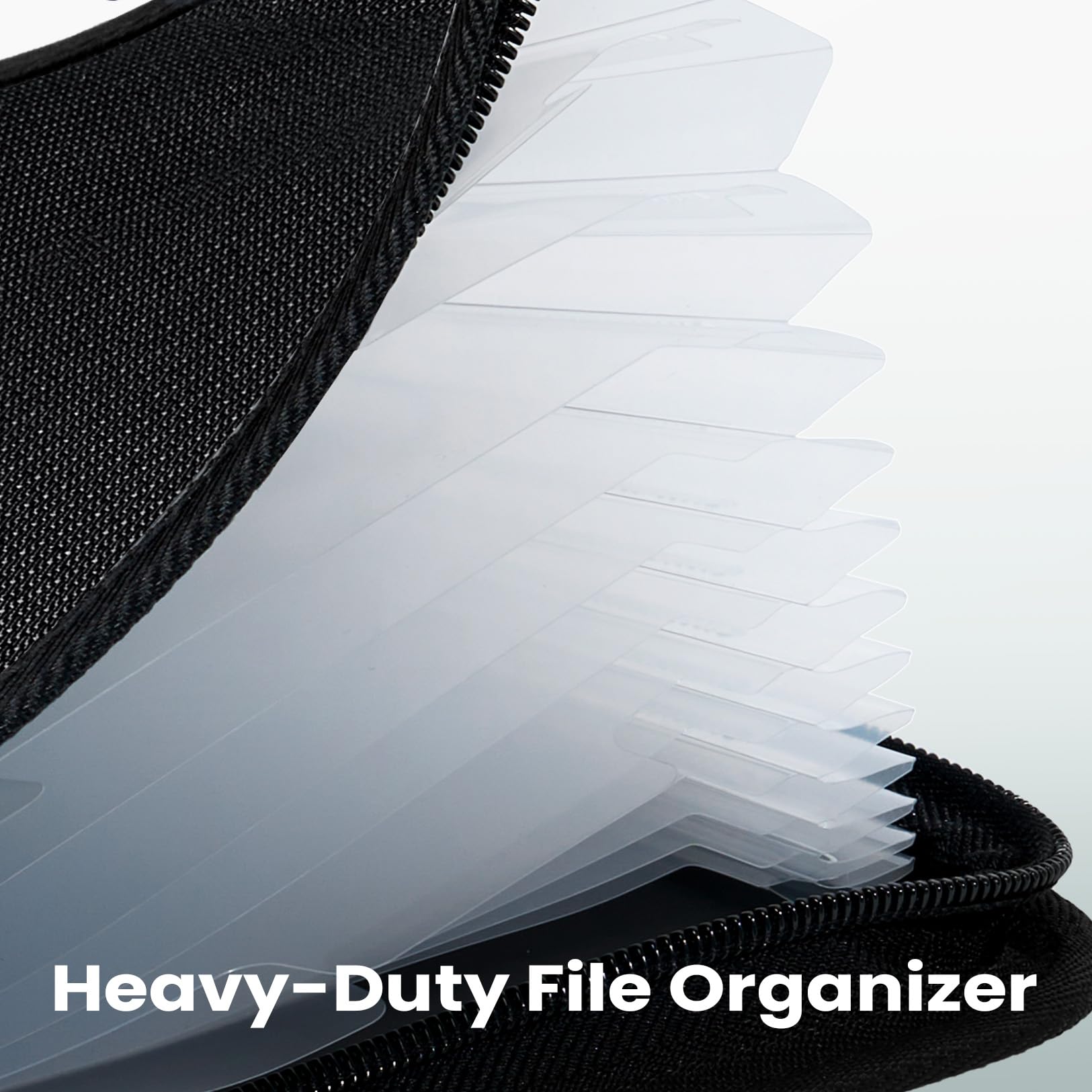 Heavy Duty Accordion File Organizer: Quite possibly the most sturdy file folder on the market. Well constructed of reliable & thickened plastic and wrapped in high-quality fabric with compacted stitching. You will be amazed by the excellent quality when you receive it.