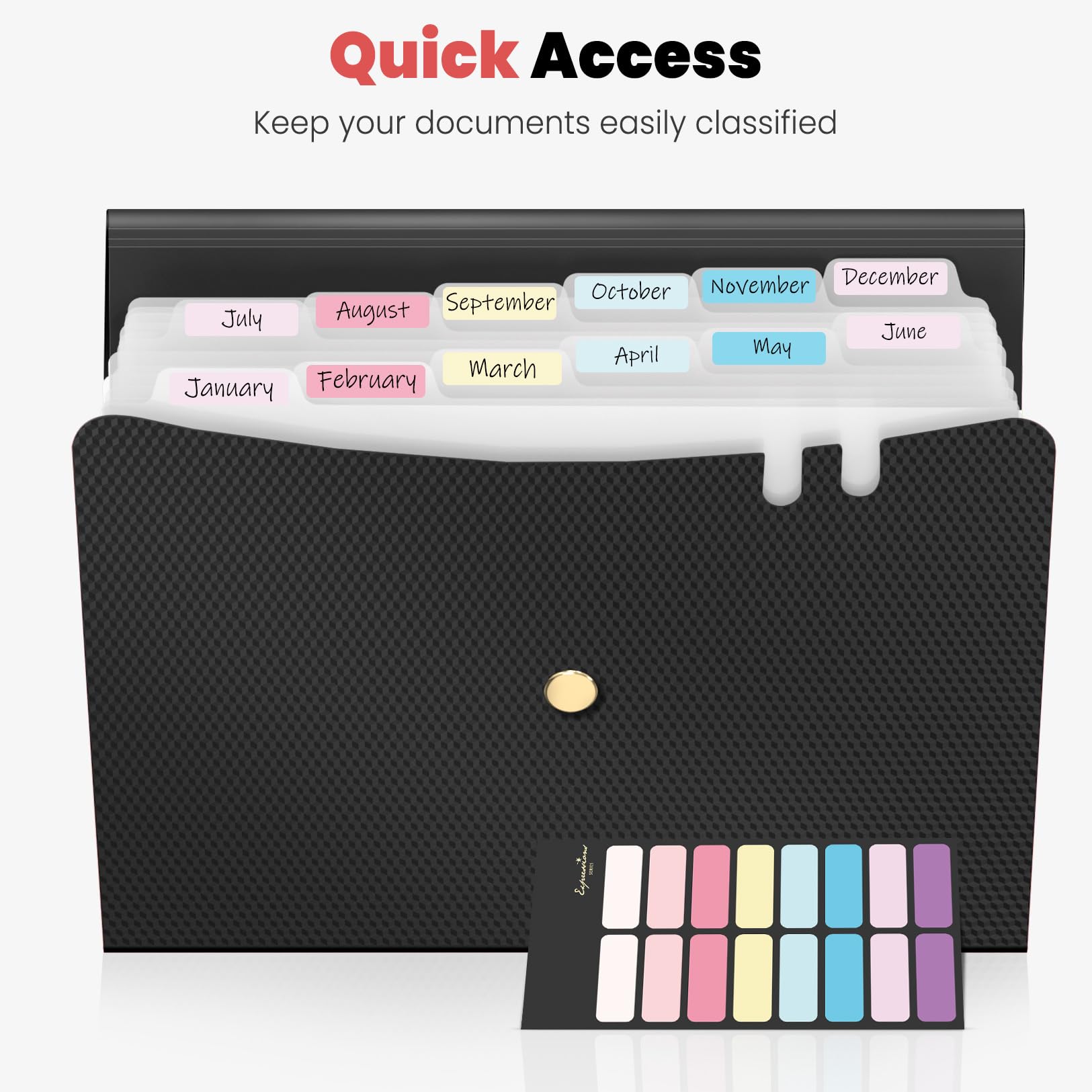 Keep Organized Easily: This expanding file folder makes sorting and organizing your papers a breeze. 13 pockets with tabs allow you to sort by subject or task, and colorful labels help you search and locate quickly.