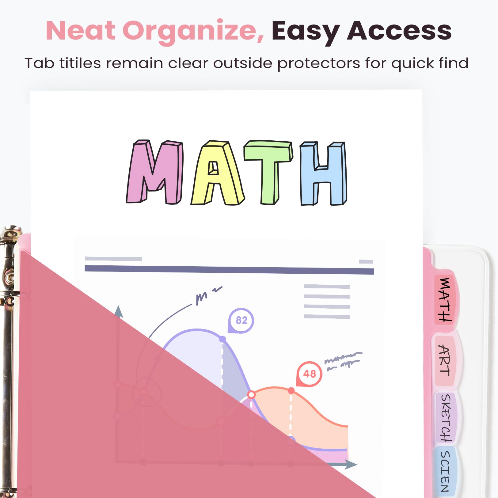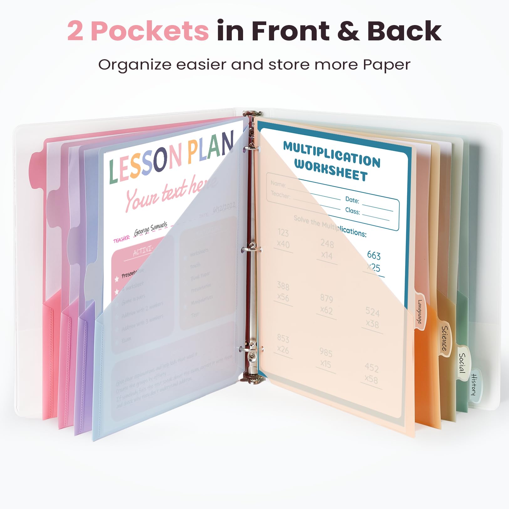 2 Pockets: 2-pocket design provides extra storage for 8.5”x 11”papers. Our binder dividers help keep your documents safe, preventing dirt, tears, or loss. Perfect for you looking to organize and protect your important files efficiently.