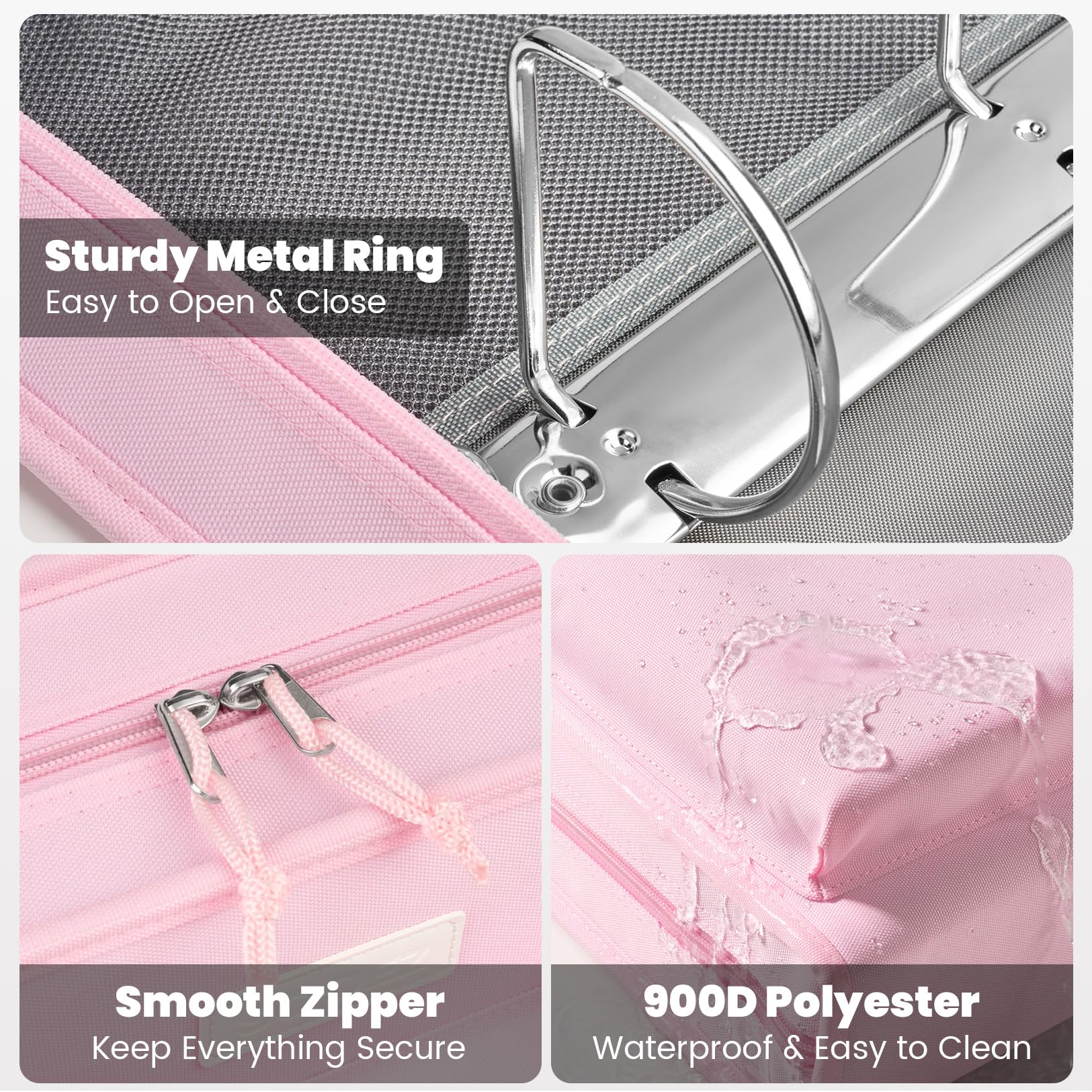 Unyielding Quality: Crafted from 900D water-resistant fabric with reinforced stitching, this zip binder bag ensures hassle-free maintenance and long-lasting durability. Equipped smooth zippers and sturdy metal rings, tough enough to withstand the wear and tear of school life