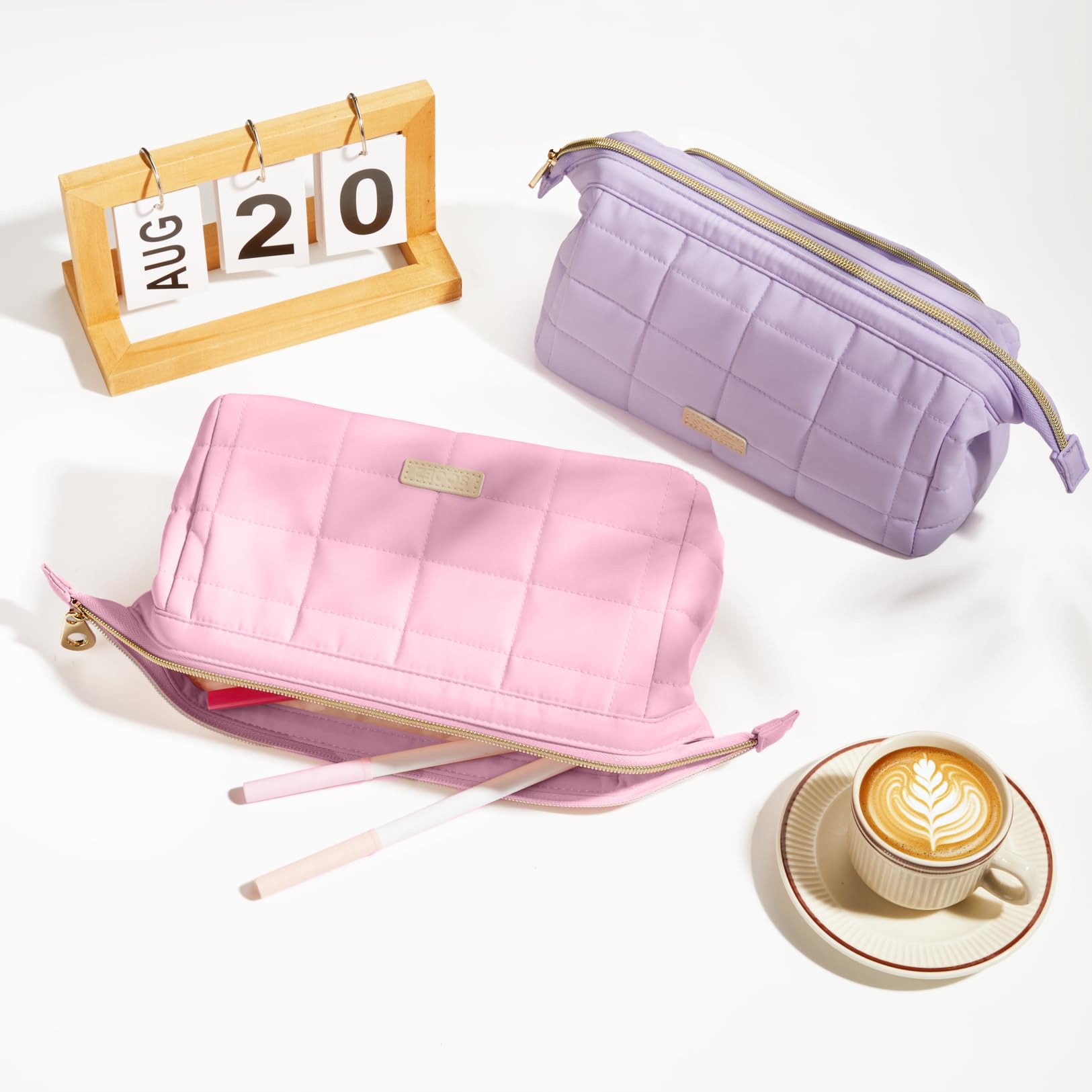 Premium Material and Heavy-duty Zipper: Crafted from soft touch materials, this pencil bag cute offers a pleasant touch. The long-lasting quilted fabric and sturdy zipper ensure durability and secure closure.