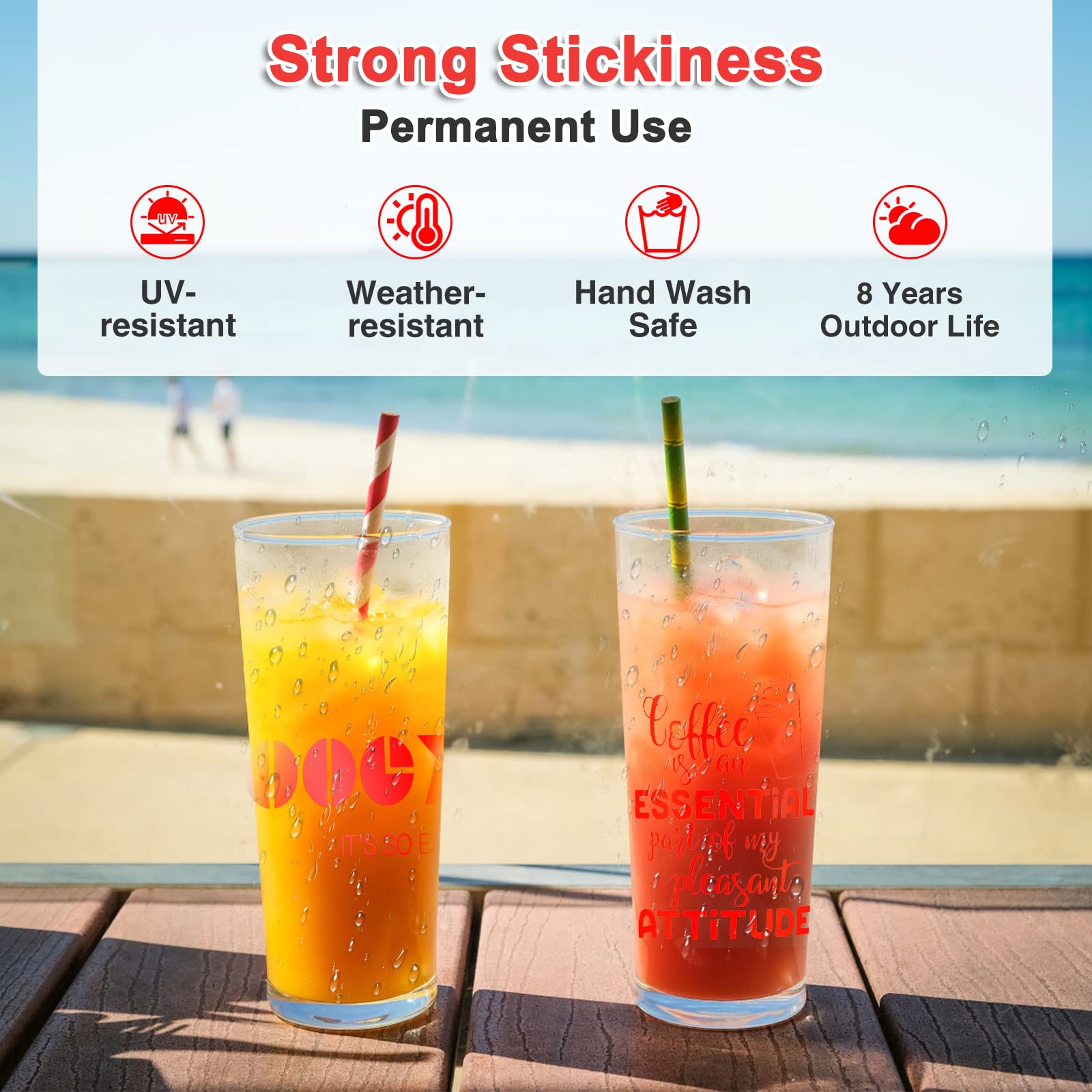 Great Stickiness: Strong adhesive backing & easy-to-peel liner protect the self-adhesive vinyl until ultra use. Featuring water-resistant & UV-resistant can withstand washing and rain indoors and outdoor. Hold on tightly to any smooth surface, last for up to 10 years indoor & 8 years outdoor. (Do not wash vinyl until 24 hrs after the bonding is completed)