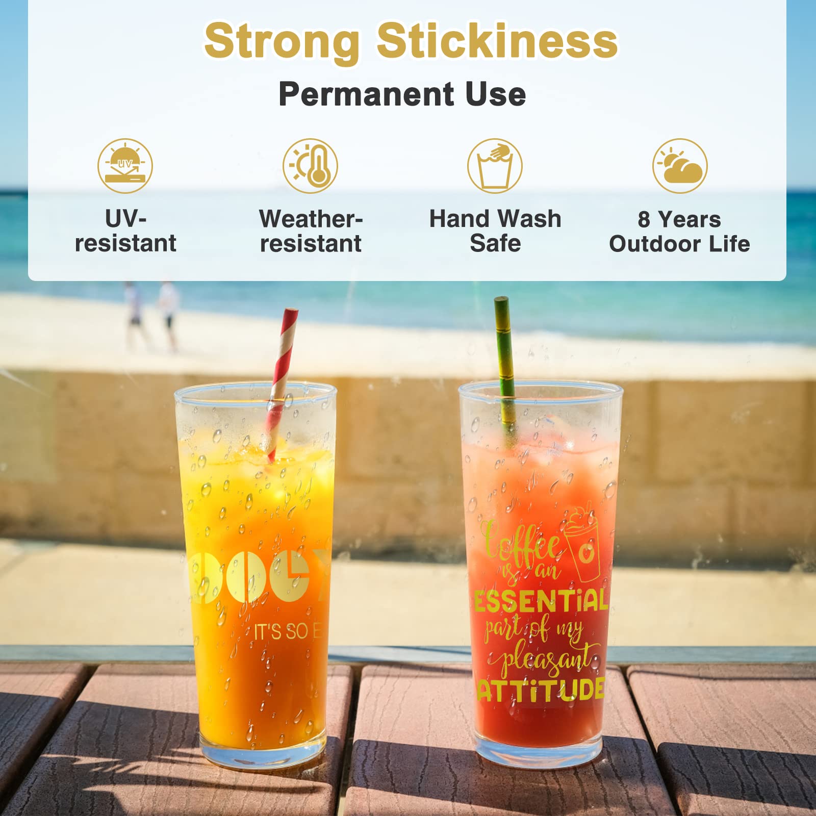 Great Stickiness: Strong adhesive backing & easy-to-peel liner protect the self-adhesive vinyl until ultra use. Featuring water-resistant & UV-resistant can withstand washing and rain indoors and outdoor. Hold on tightly to any smooth surface, last for up to 10 years indoor & 8 years outdoor. (Do not wash vinyl until 24 hrs after the bonding is completed)
