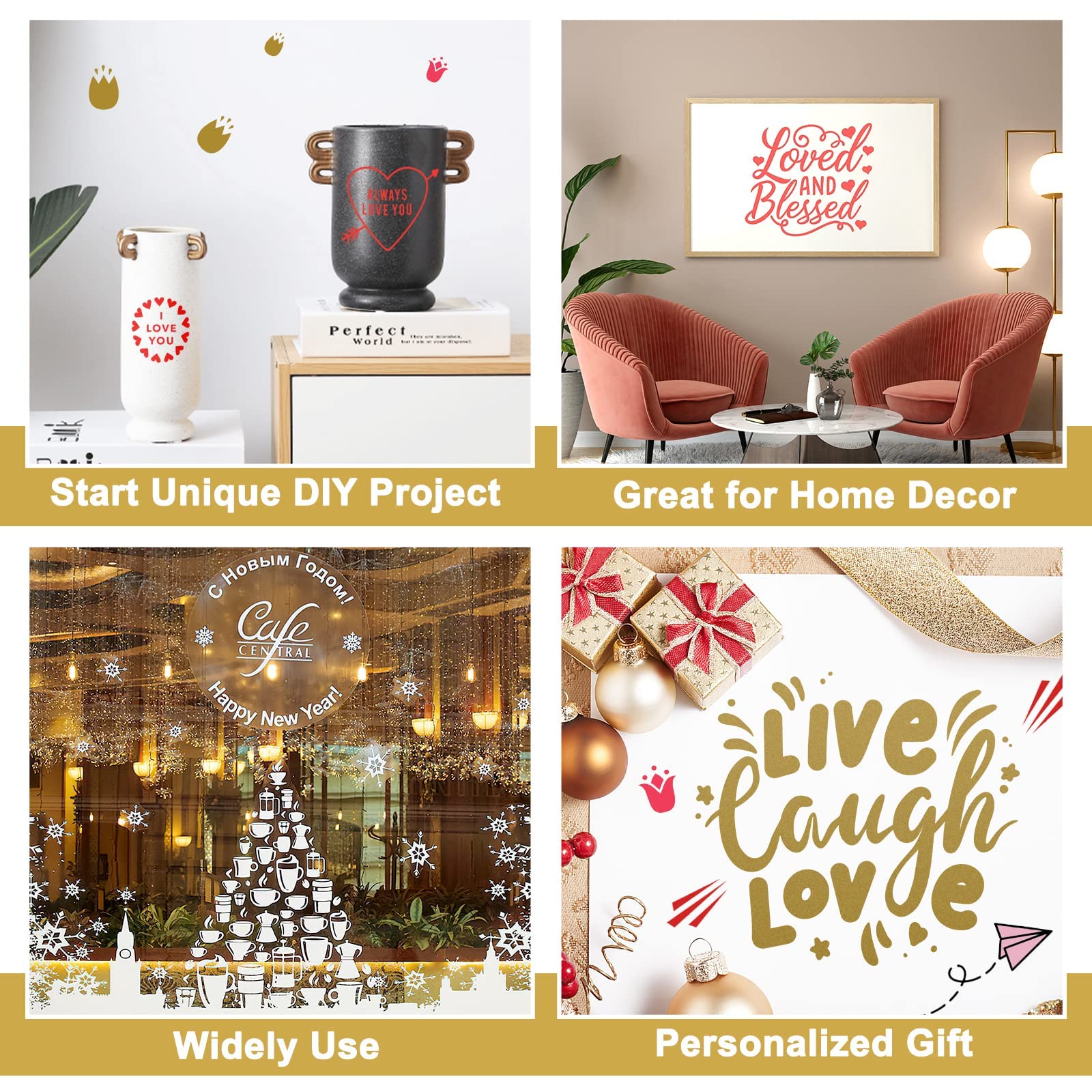 Widely Used & Creative Gift: Ideal for but not limited to home decor, coffee mugs, stencils, scrapbooking, signs, letters, banners, car decals, window graphics. Smooth surfaces are sure to be transferred well. Unleash your creativity! It's never too late to start a personalized DIY, ideal choice for New Year, Christmas, and anniversaries gift to your family. (Notice: Not HTV. Not suitable for fabric)