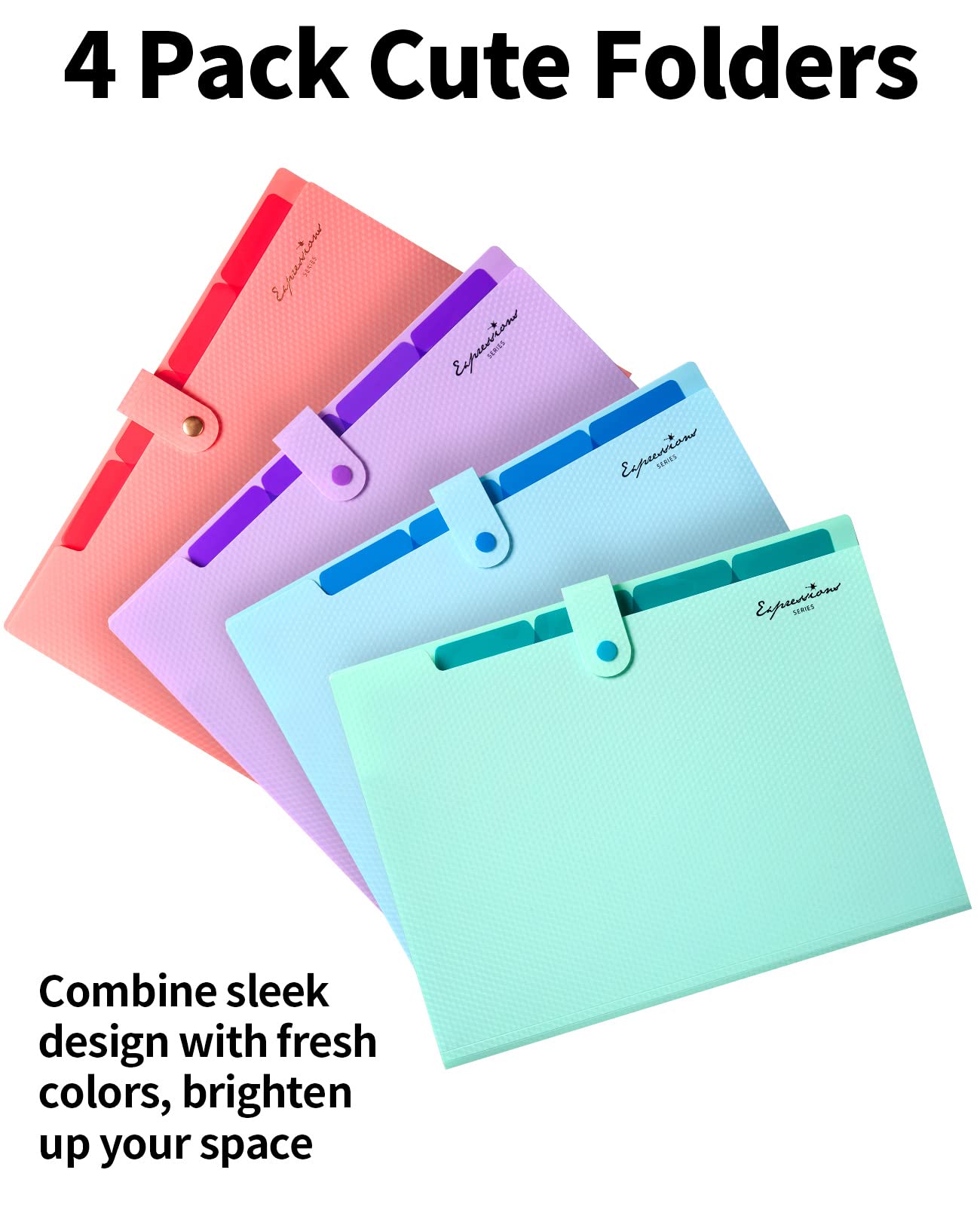 Sooez 4 Pack Accordion File Folder, Cute 5 Pocket Folder, Portable Expanding Filer Folder with Labels, Folders for Documents, Premium Expandable Folders Organizer, Aesthetic School Office