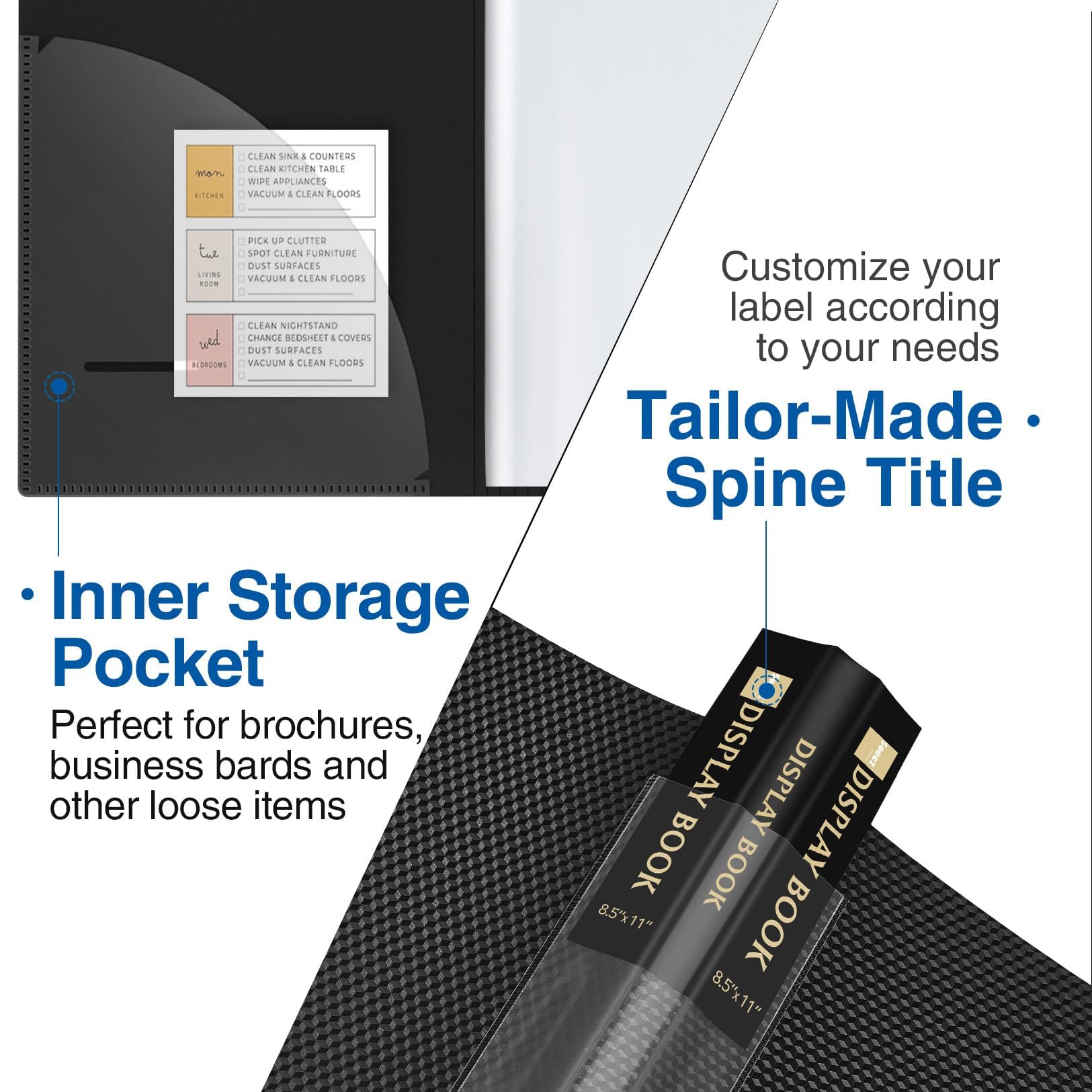 High Transparency & Lies Flat When Open: Our presentation book with crystal clear PP sheet protectors offers complete transparency for checking through and organizing. Bound sheet protector lies flat when open, free your hands.