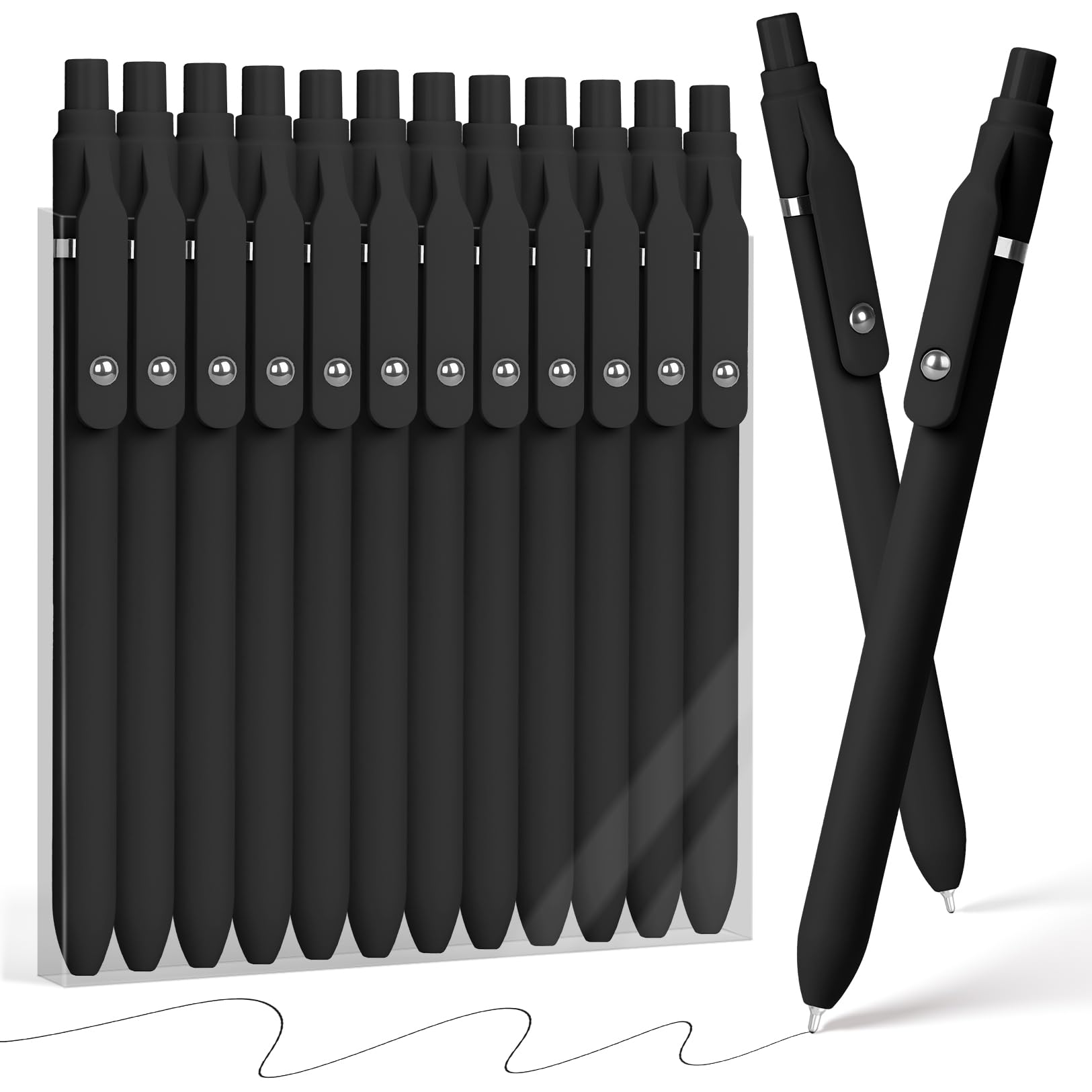 • Sooez Ballpoint Pens Retractable, 12 Pack Black Pens ballpoint with Comfort Grip, Smooth Writing Fidge Pen for Journaling, Cute Office and School Supplies Bulk Pens, 1.0mm Medium Point Black ink