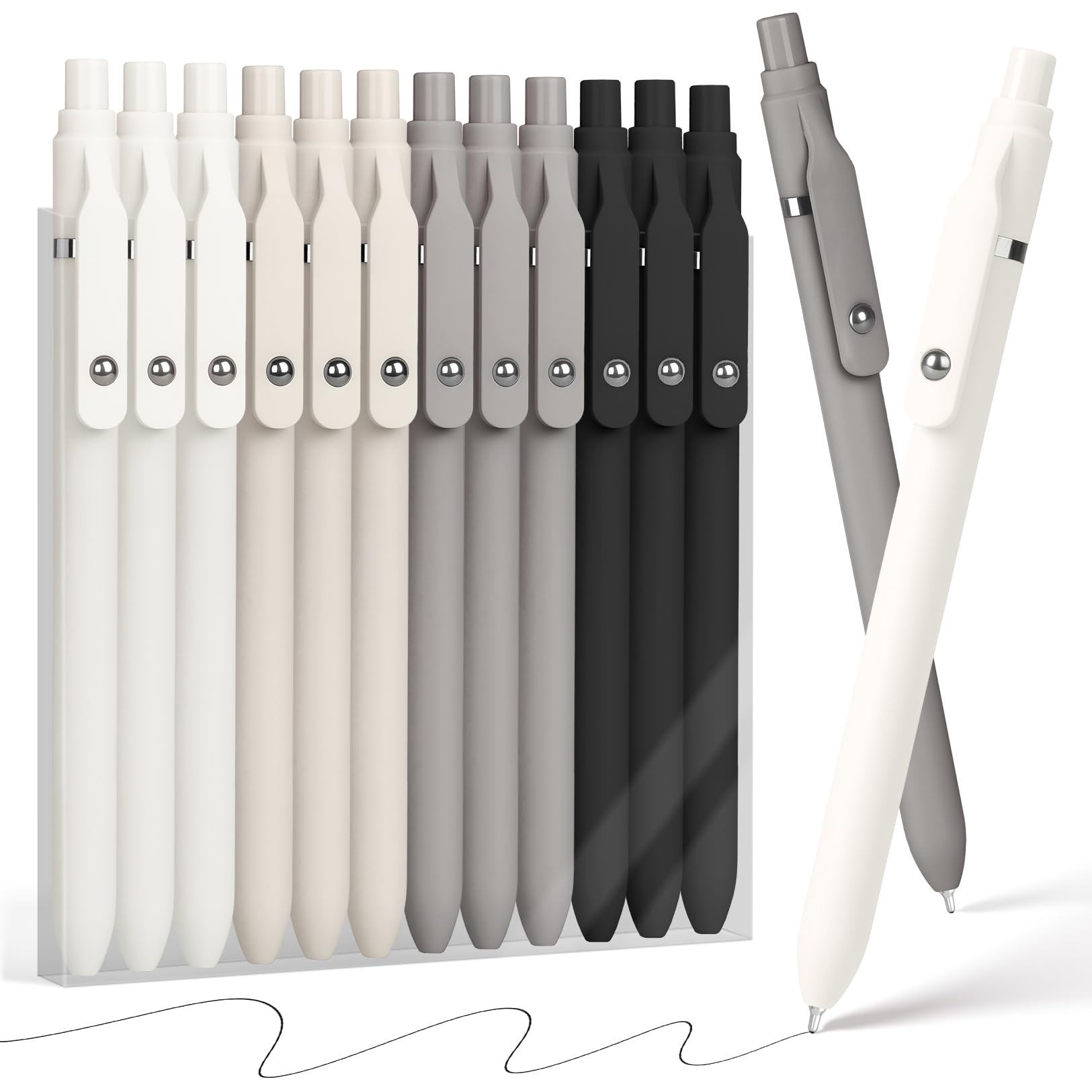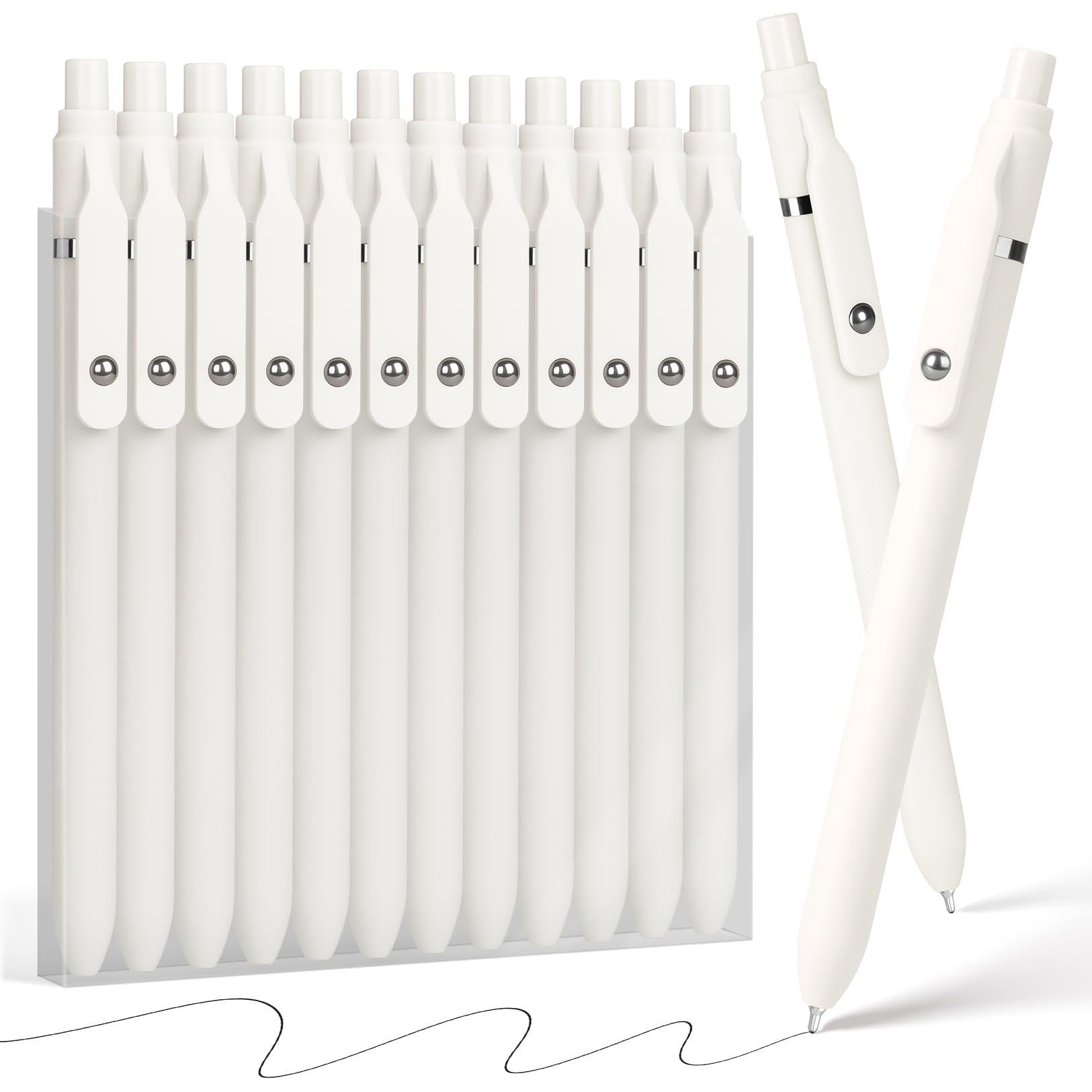 • Sooez Ballpoint Pens Retractable, 12 Pack Black Pens ballpoint with Comfort Grip, Smooth Writing Fidge Pen for Journaling, Cute Office and School Supplies Bulk Pens, 1.0mm Medium Point Black ink White