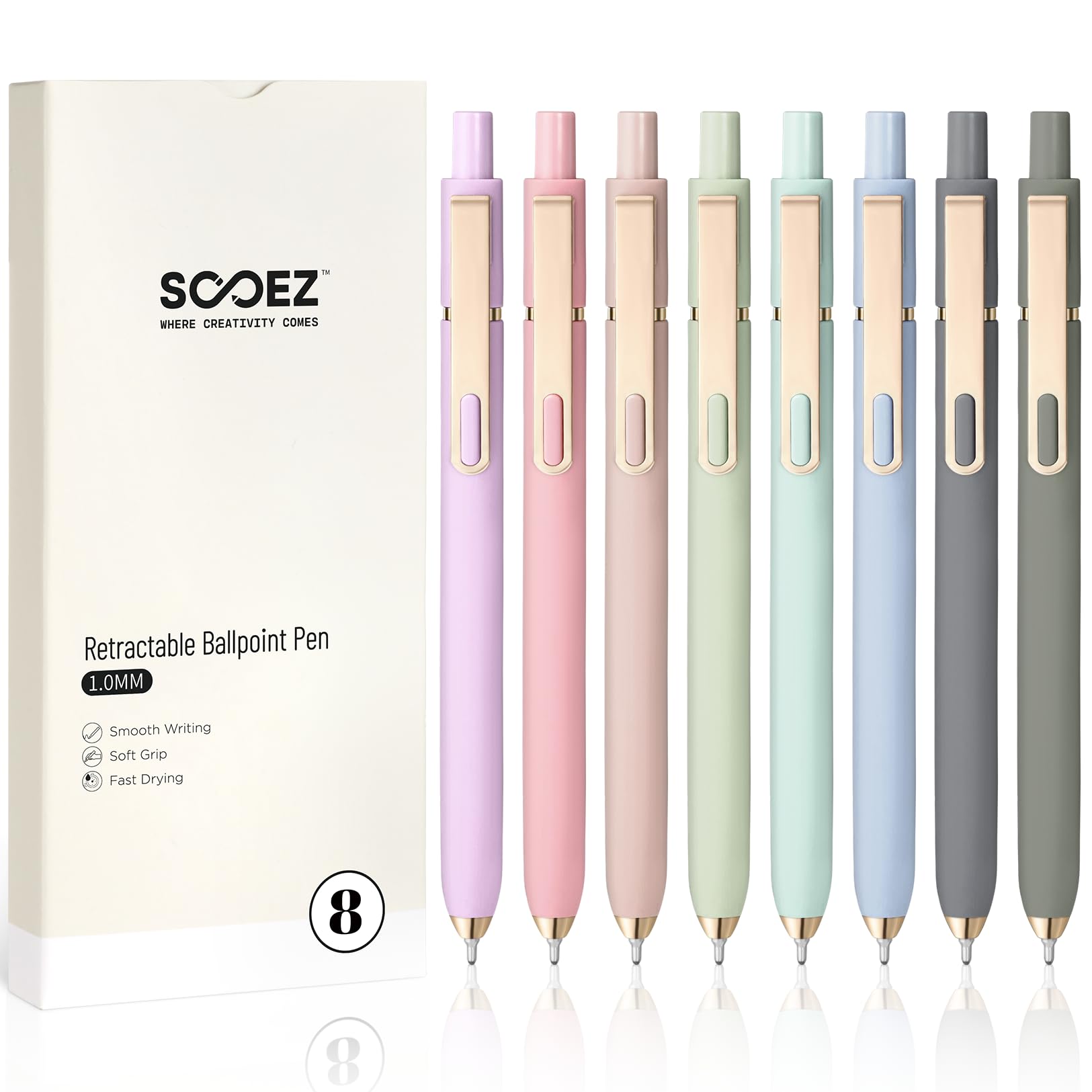 • Sooez 8 Pack Ballpoint Pens, 1.0 mm Medium Point Black Ink Pens, Smooth Writing Pen Bulk for Journaling, Soft Grip Cute Pen for Women, Nurse, Office School Supplies, Small Teacher Gifts, Multicolor