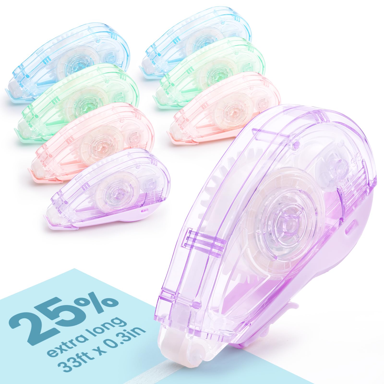 Extra Long Glue Tape for Scrapbooking, Sooez 8 Pack Double Sided Tape Roller for Crafts, 33ft x 0.31in, Adhesive Scrapbook Tape Glue Runner for Journaling Supplies, Card Making, School Office Supplies
