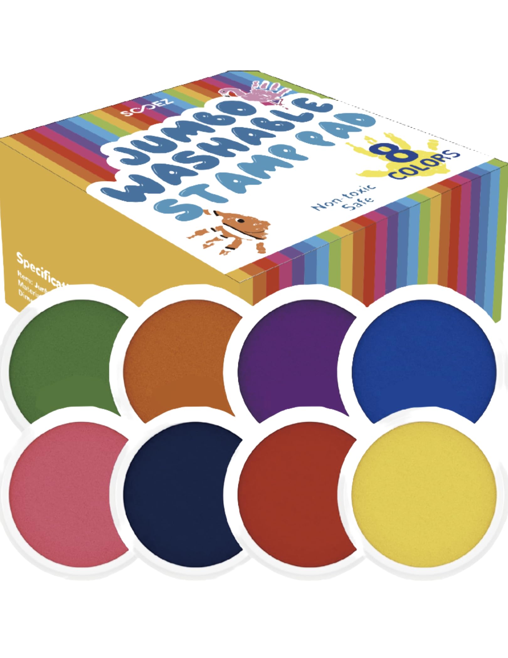 7-Inch Extra Large Ink Pads for Kids, Washable & Non-Toxic Rainbow Handprint Footprint Stamp Pad Set for Fingerprint Art, Card Making, Scrapbooking, 8 Color
