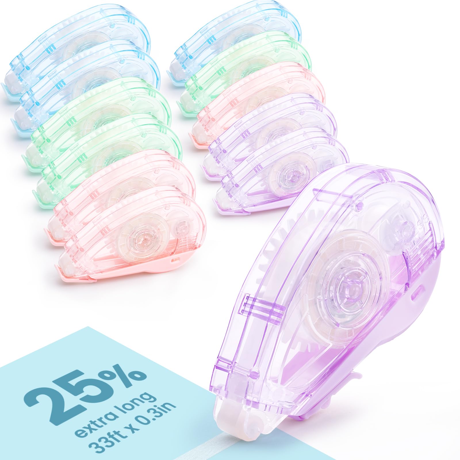 Extra Long Glue Tape for Scrapbooking, Sooez 12 Pack Double Sided Tape Roller for Craft, 33ft x 0.31in, Adhesive Scrapbook Tape Glue Runner for Journaling Supplies, Card Making, School Office Supplies