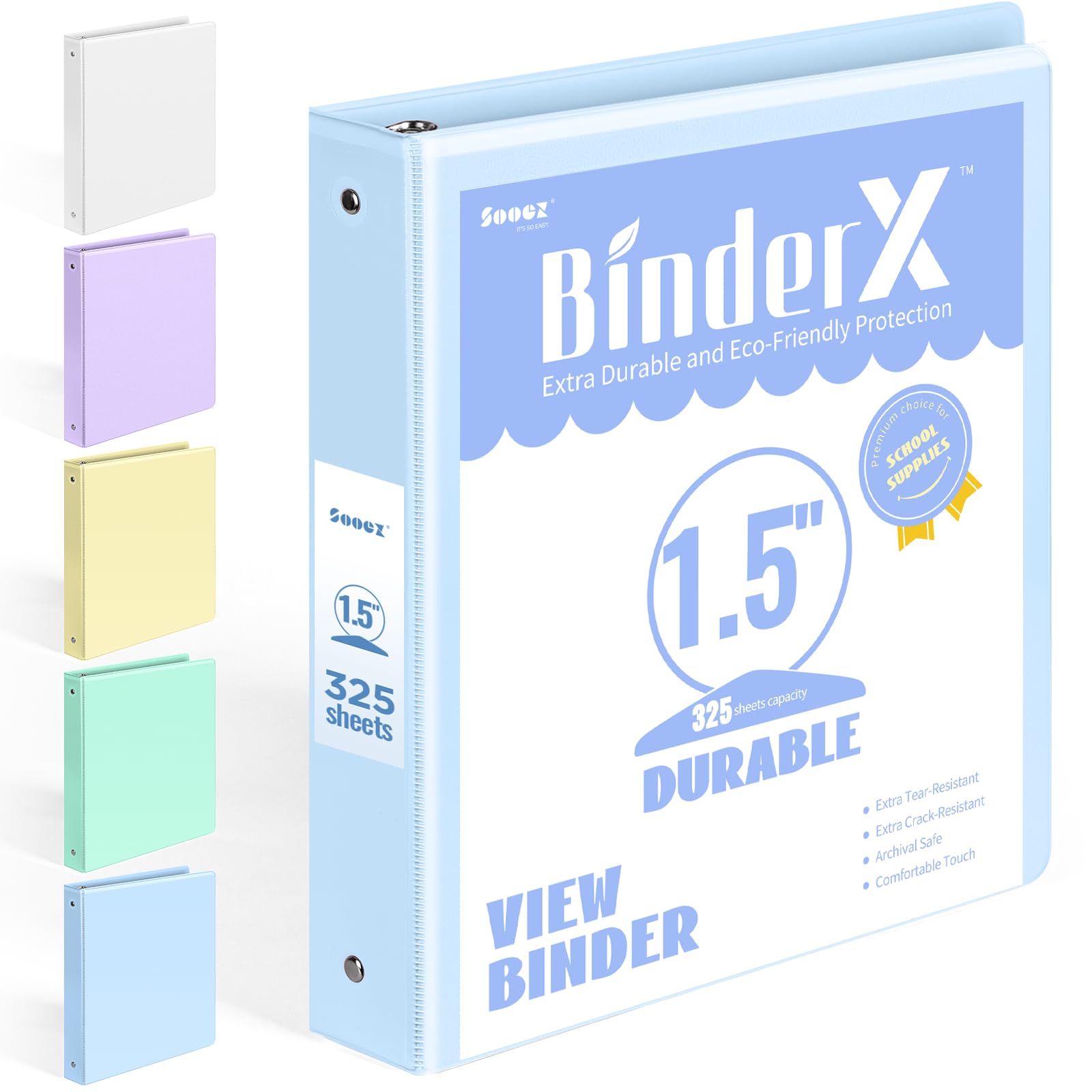 BinderX Extra Durable 1.5 Ring Binder, Round Ring 1.5 Inch Binders, Fits 325 Sheets of 8.5x11 Paper, Customizable View Cover with Inside Pockets, Cute 1.5" Binder, School Supplies for Girls, Blue