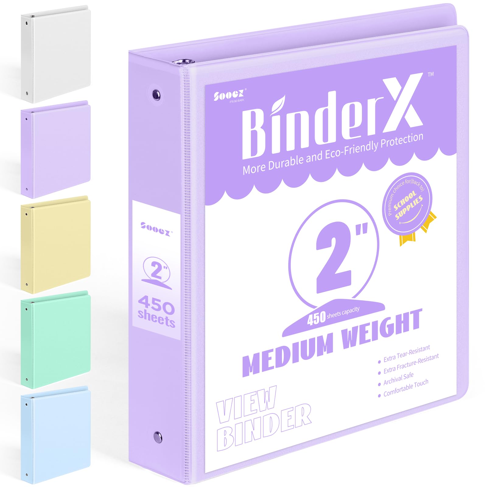 Sooez BinderX Extra Durable 3 Inch 3 Ring Binder, D-Ring Large Binders, Holds 670 Sheets of 8.5x11 Paper, Customizable View Cover with 2 Inside Pockets, School & Office Supplies, Lavender