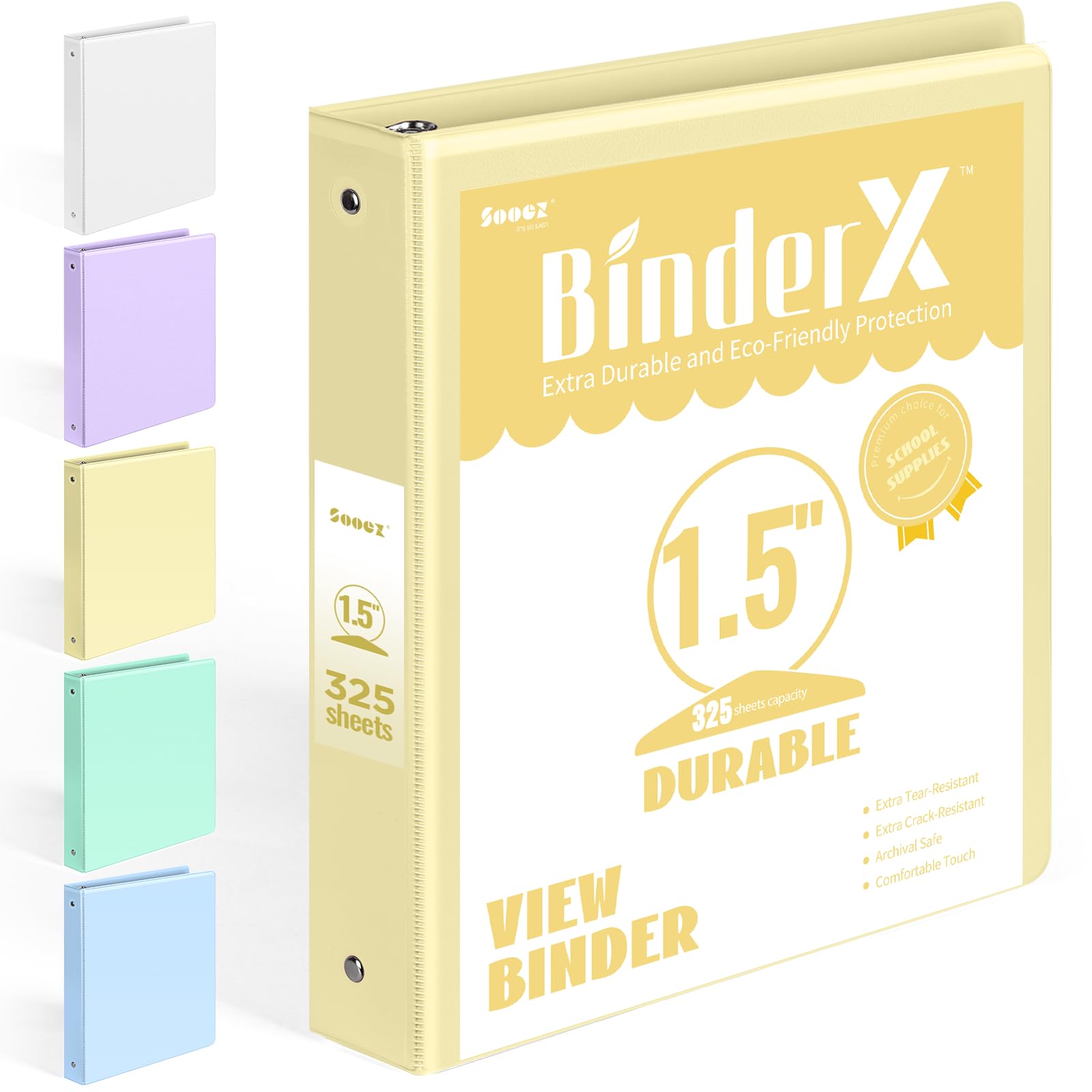 BinderX Extra Durable 1.5 Ring Binder, Round Ring 1.5 Inch Binders, Fits 325 Sheets of 8.5x11 Paper, Customizable View Cover with Inside Pockets, Cute 1.5" Binder, School Supplies for Girls, Yellow