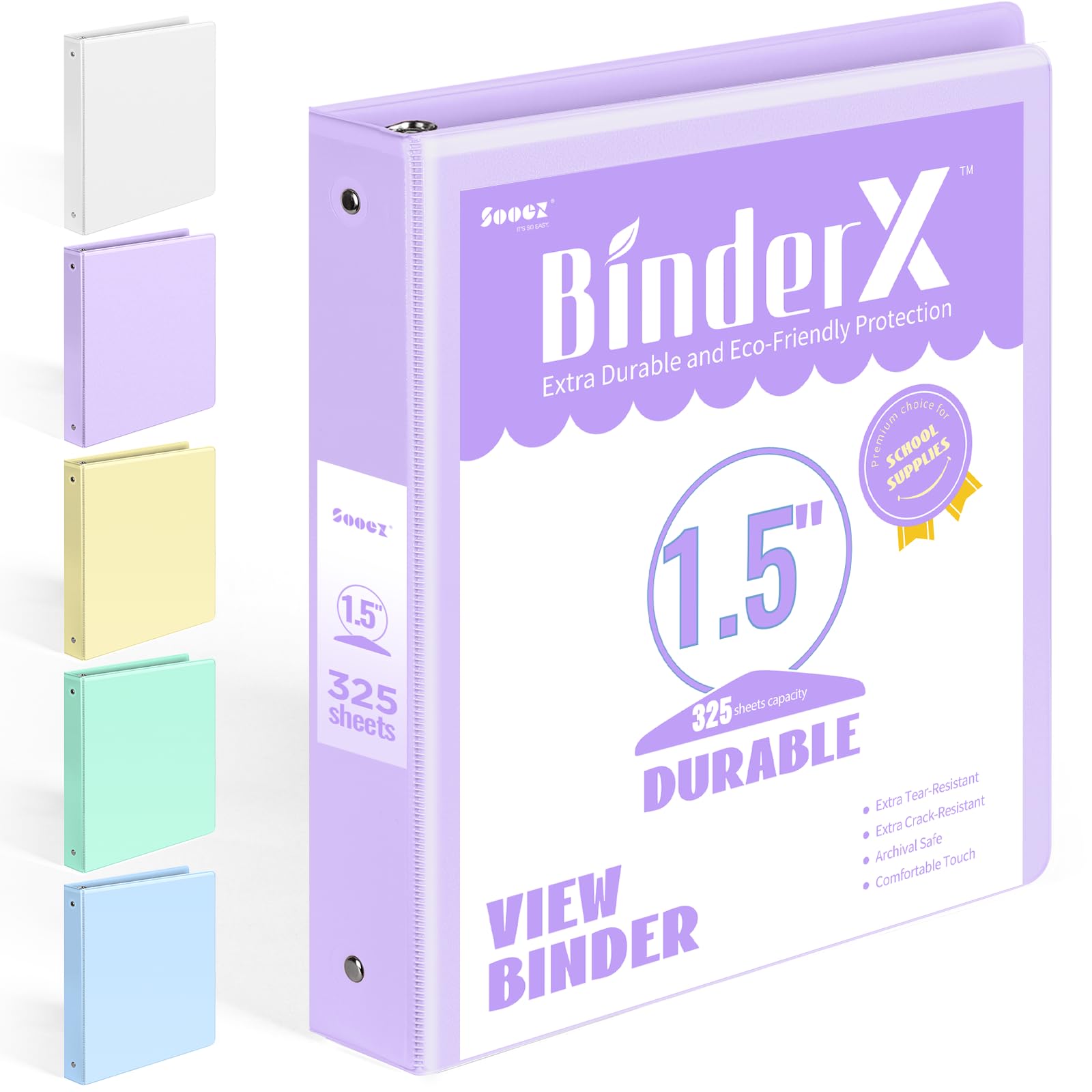 BinderX Extra Durable 1.5 Ring Binder, Round Ring 1.5 Inch Binders, Fits 325 Sheets of 8.5x11 Paper, Customizable View Cover with Inside Pockets, Cute 1.5" Binder, School Supplies for Girls, Lavender