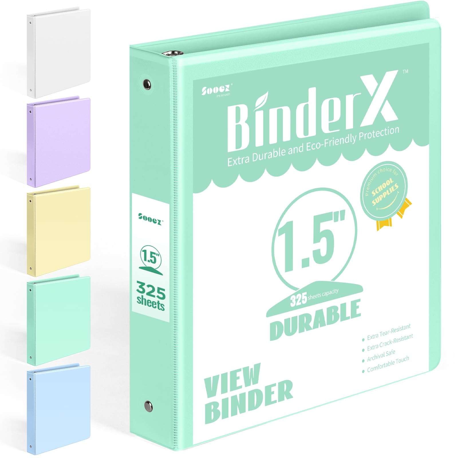BinderX Extra Durable 1.5 Ring Binder, Round Ring 1.5 Inch Binders, Fits 325 Sheets of 8.5x11 Paper, Customizable View Cover with Inside Pockets, Cute 1.5" Binder, School Supplies for Girls, Green